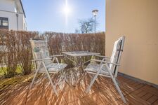 Die Terrasse hat Südlage und ist teilweise überdacht. Bequeme Terrassenmöbel inkl. Sonnenschirm sind vorhanden. Auf der rückwärtigen Gebäudefläche befindet sich ein zur Wohnung gehöriger PKW-Stellplatz. Im abschließbaren Gemeinschaftsschuppen können Fahrräder untergestellt werden. Kostenloses WLAN, 1 Kinderreisebett und 1 Kinderhochstuhl sind vorhanden und stehen kostenlos zur Verfügung.