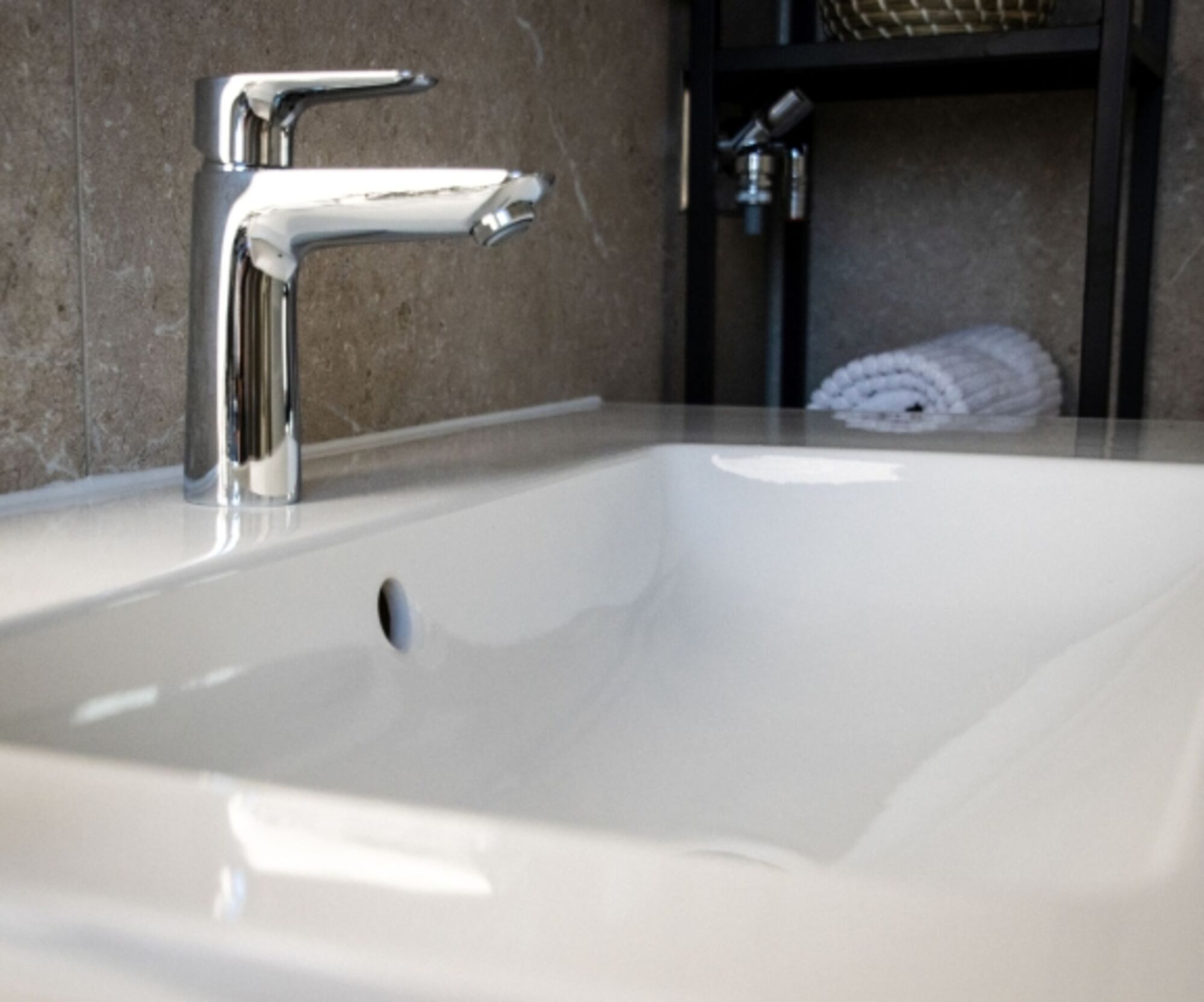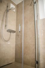 Klein aber gemütlich ist das Bad mit Handtuchtrockner, Föhn & Soundanlage.