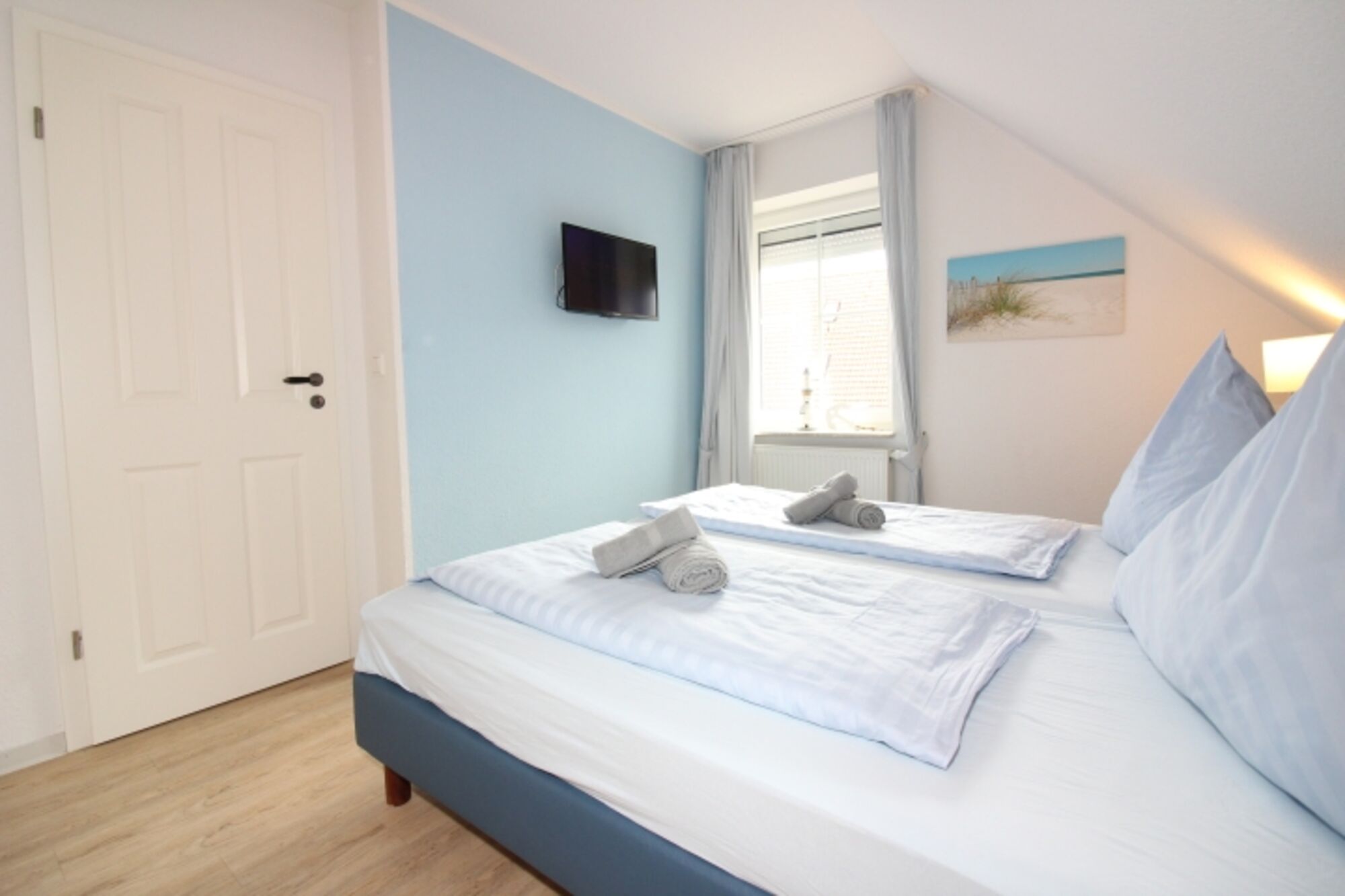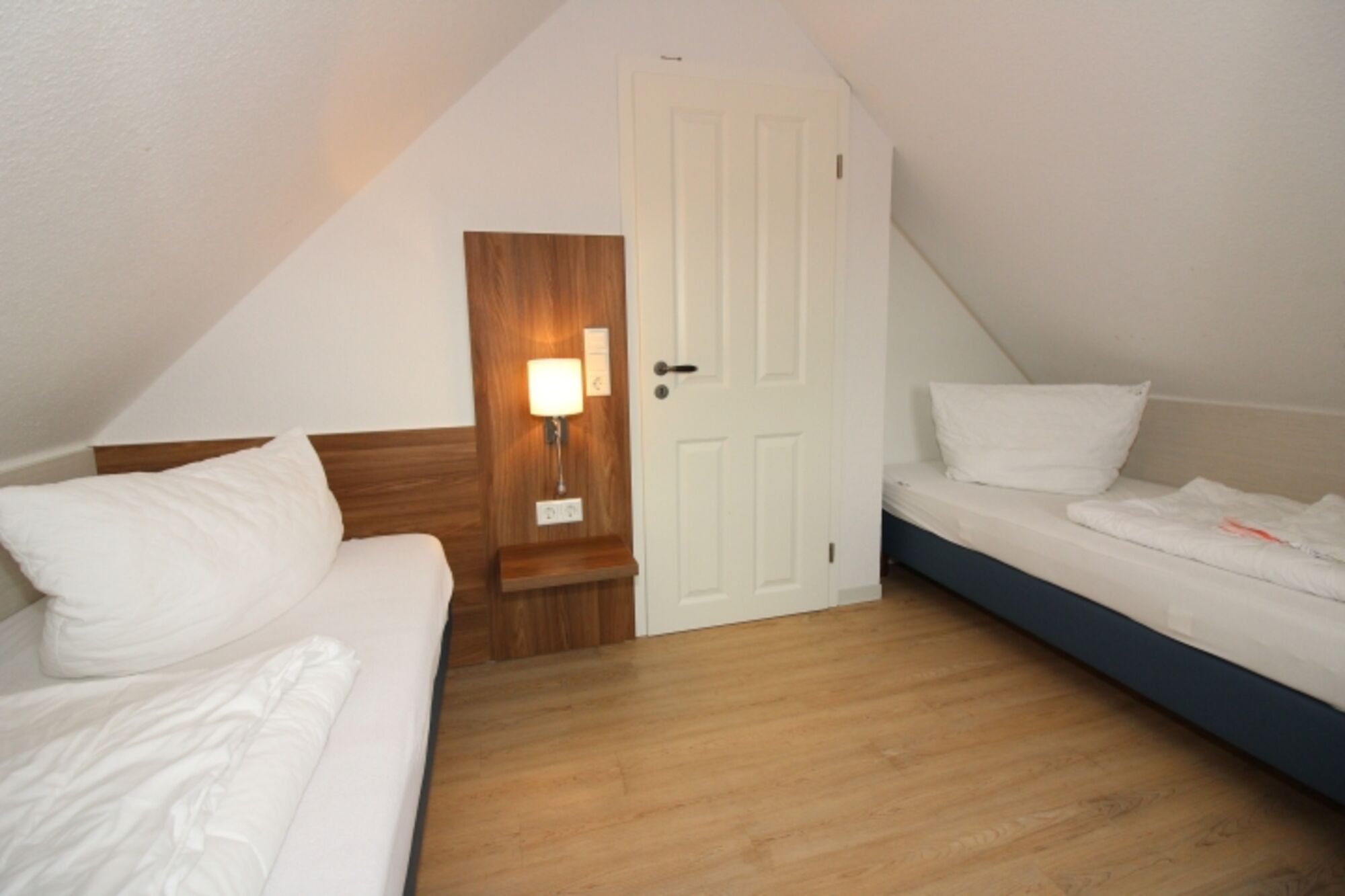 Ein Schlafraum ist ausgestattet mit Doppelbett, Kleiderschrankwand und 28' HD-TV. Der weitere Schlafraum ist ausgestattet mit zwei getrennten Betten, Kleiderschrank und einem Fernseher. Im Dachgeschoss befindet sich ebenfalls ein Schlafraum mit 2 getrennten Betten, Kleiderschrank , Fernseher und Schreibtisch.