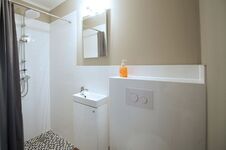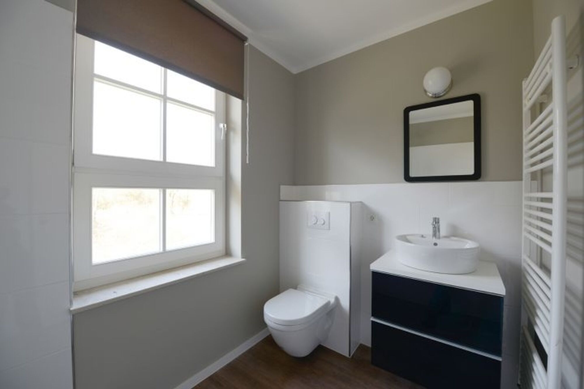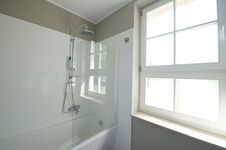 Es gibt ein großzügiges Wannenbad im oberen Bereich sowie ein kleines Duschbad mit WC im Erdgeschoss.
