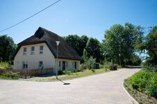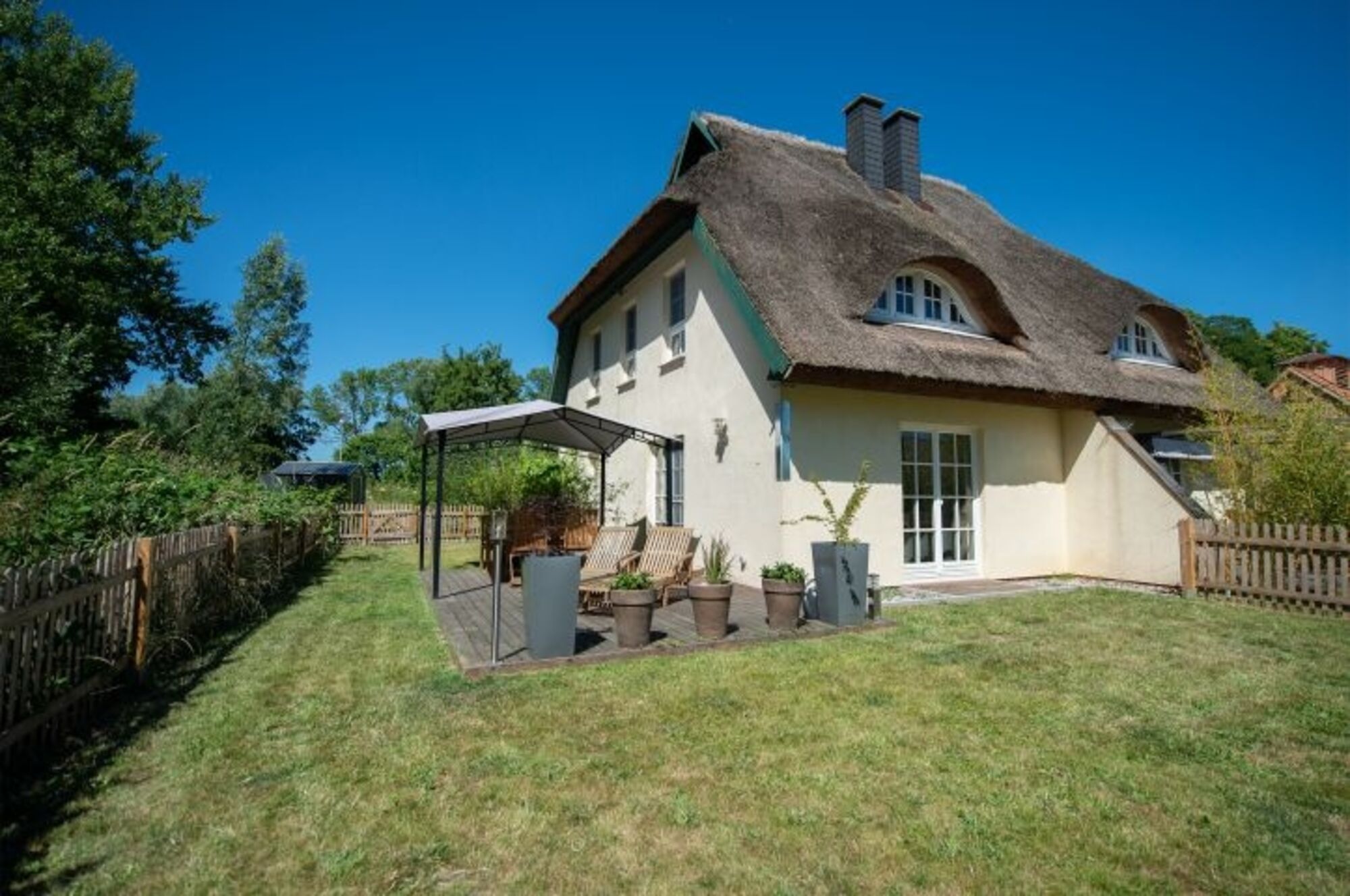 Reetdach-Doppelhaushälfte mit Garten in Boddennähe
