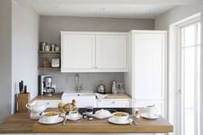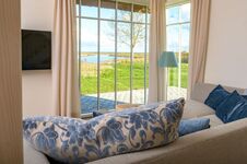 Auf 145 Quadratmetern Wohnfläche genießen Sie die Annehmlichkeiten der exklusiven Einrichtung. Kamin, Sauna und großzügige Terrasse mit einer Sitzecke aus Teakholz und eigenem Standkorb sind nur einige Aspekte der Wohlfühl-Oasen in diesem Atelierhaus. Es gibt fünf Schlafzimmer und drei Bäder, eines davon en-Suite zum Schlafzimmer. Die unteren drei Schlafbereiche und zwei der Bäder sind auch gut von bewegungseingeschränkten Gästen nutzbar.