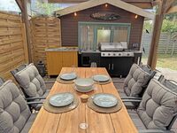 Erleben Sie unvergessliche Sonnenuntergänge, während Sie gemütlich auf einer Picknickdecke am Ufer entspannen. Die Ferienwohnung bietet Ihnen einen privaten Rückzugsort mit einem vollständig eingezäunten Garten und einer einladenden Terrasse. Für kulinarische Abenteuer im Freien bietet das Beach House eine hochwertige Außenküche, ausgestattet mit einem Gasgrill, einer Spüle und einem Kochfeld. Ein Carport sowie ein abschließbares Gartenhaus stehen für Ihre Bequemlichkeit zur Verfügung, ideal für die sichere Aufbewahrung von Fahrrädern oder anderen Utensilien.