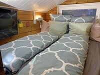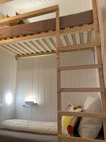 Die Matratzen sind 90 x 200 bzw. 80 x 200 cm groß. Spiegel, Leselampe am Bett, Fliegengitter