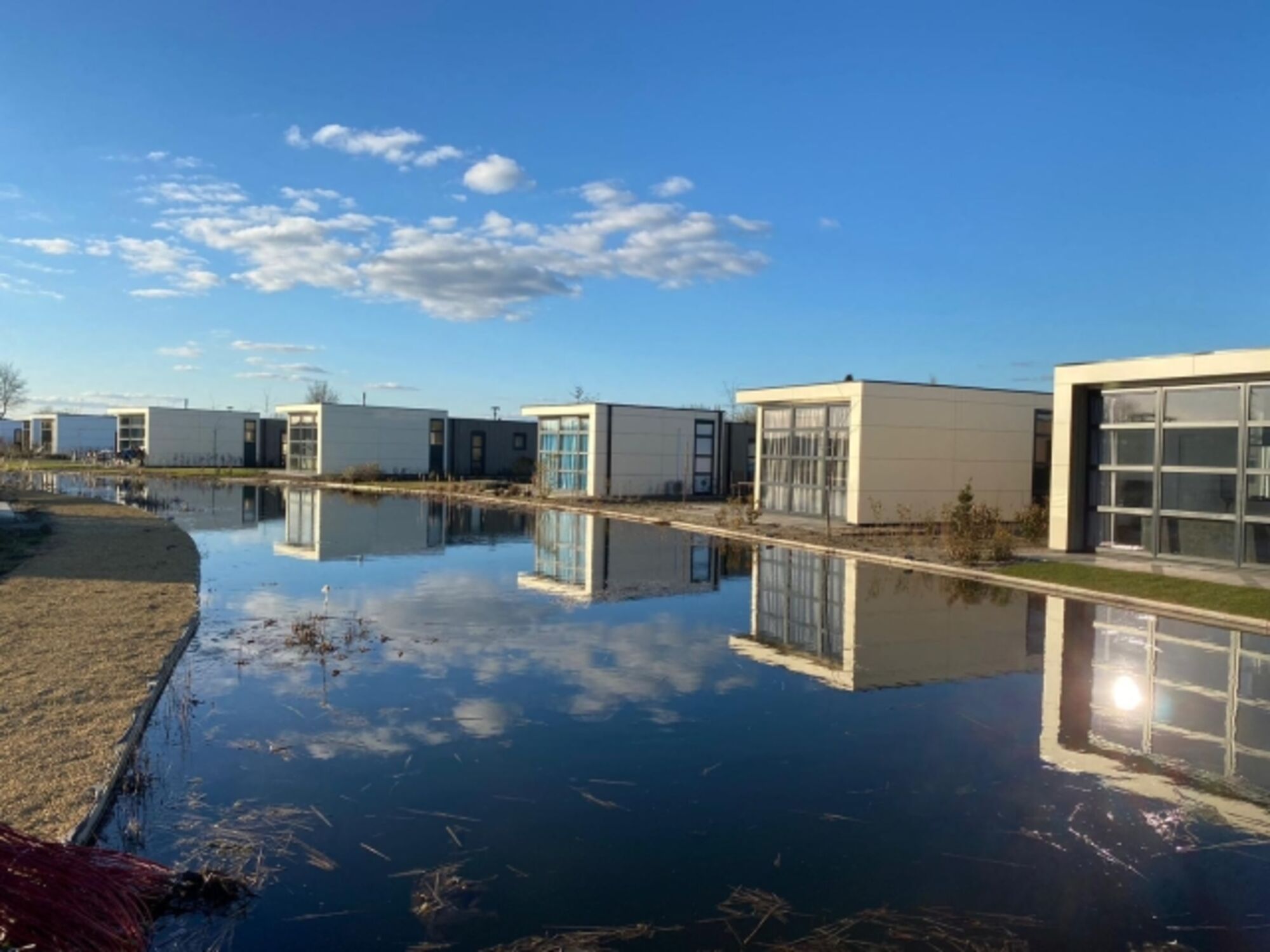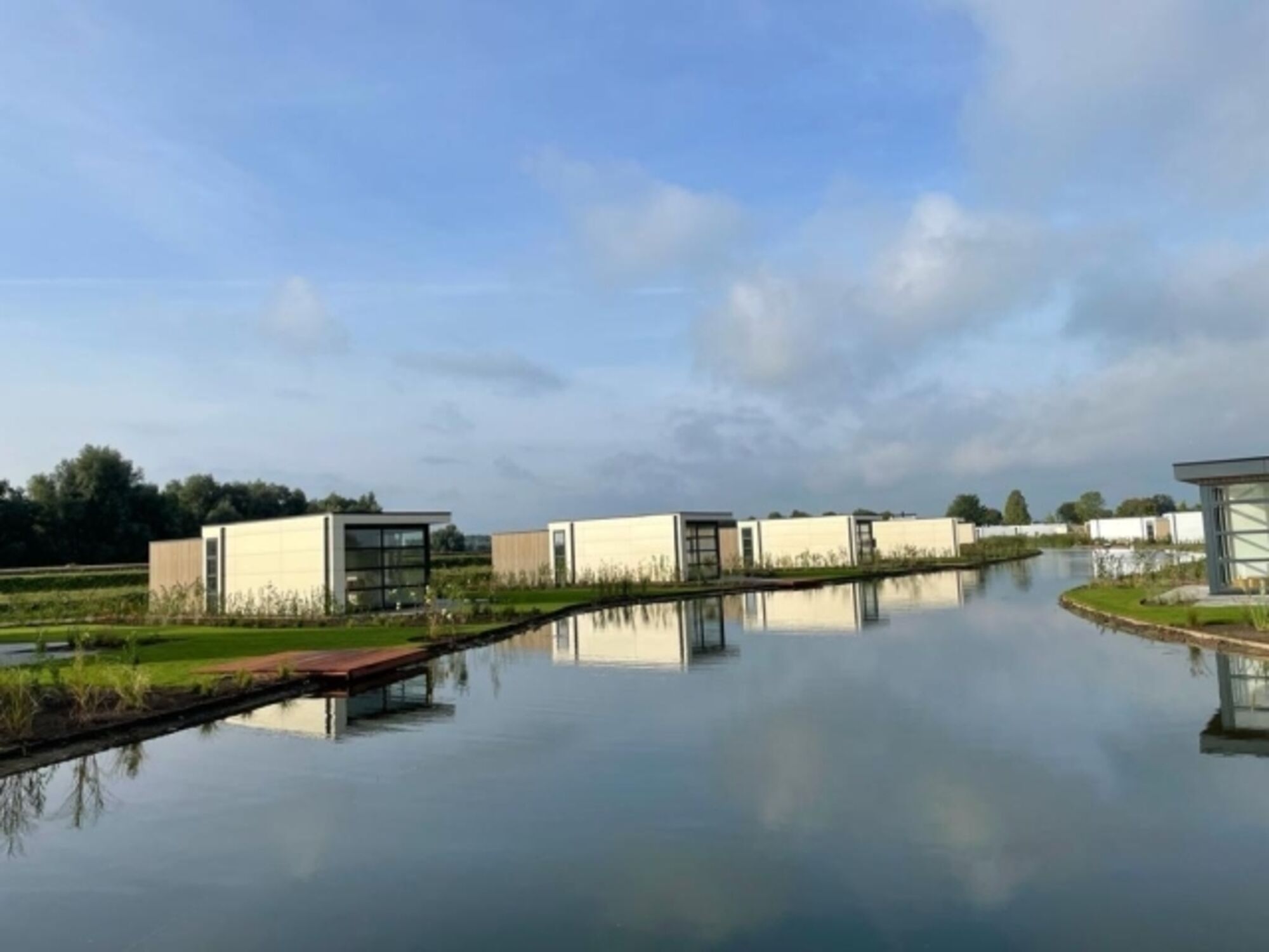 Willkommen in unserem wunderschönen Chalet "Aan het Strand", Baujahr 2022, auf einem sonnigen Grundstück von ca. 390 m², komplett eingezäunt. Unser Chalet liegt direkt am Binnengewässer des Parks und bietet Ihnen eine einzigartige Lage.