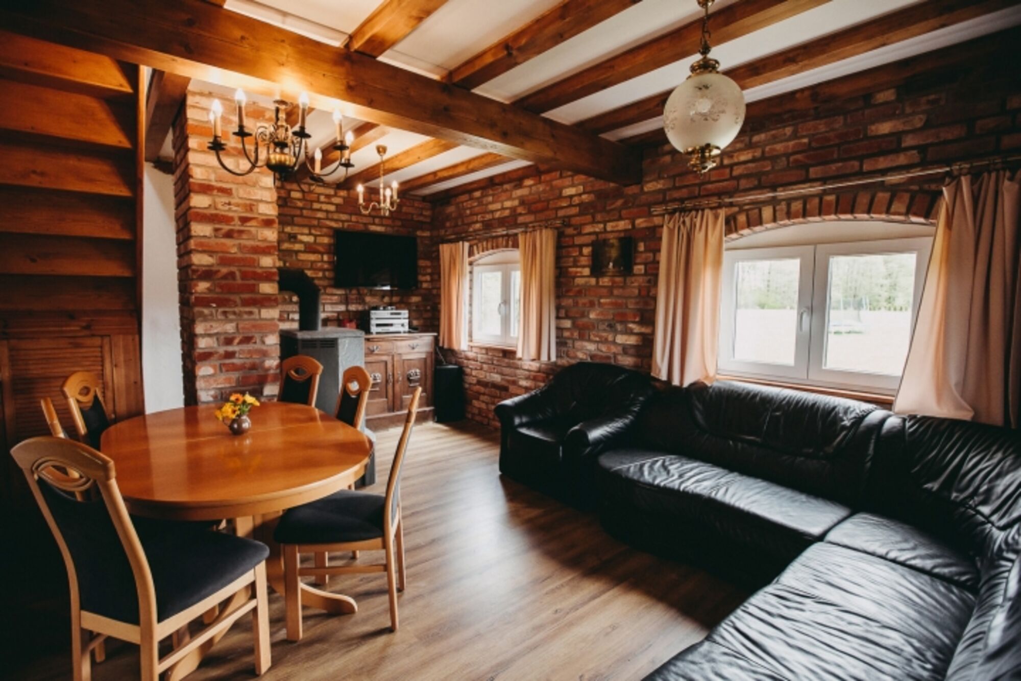 Die Ferienhäuser sind aus alten Ziegelsteinen gebaut, sind mitten im Grünen in ruhige Lage gelegen und befinden sich in Sackshöhe (polnisch: Zakrzewo), ca. 5 Fahrminuten zum breiten Sandstrand (Kopan) und ca 10 Minuten Fahrstrecke bis zur Stadt Rügenwalde (Darlowo) mit Einkaufsmöglichkeiten, Cafes uvm.