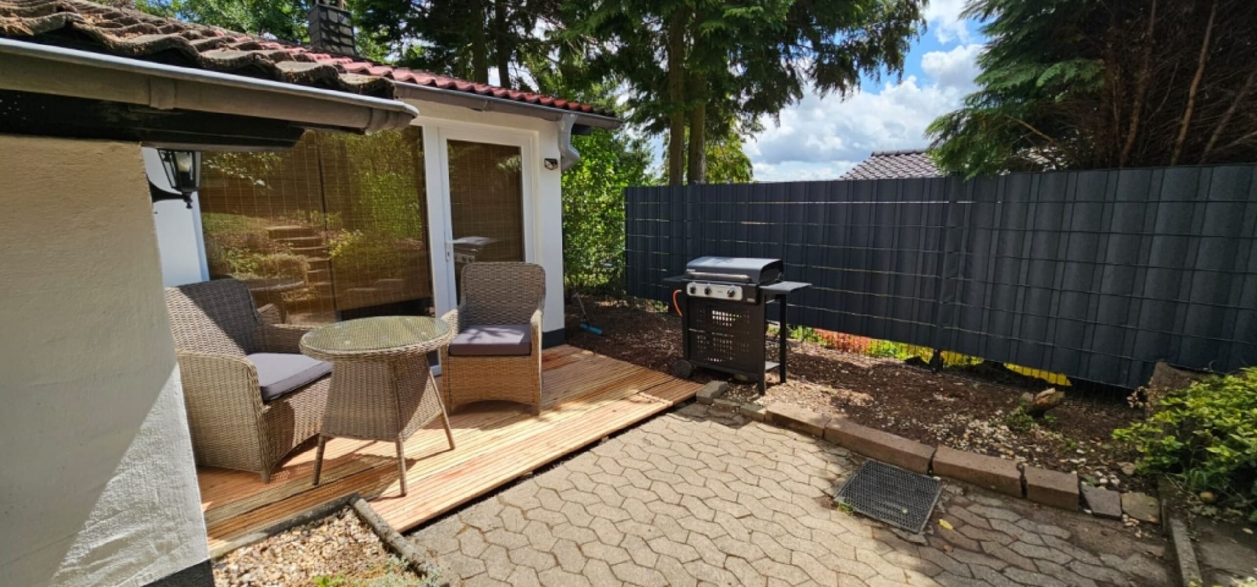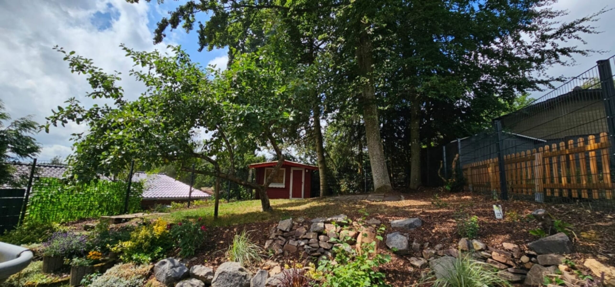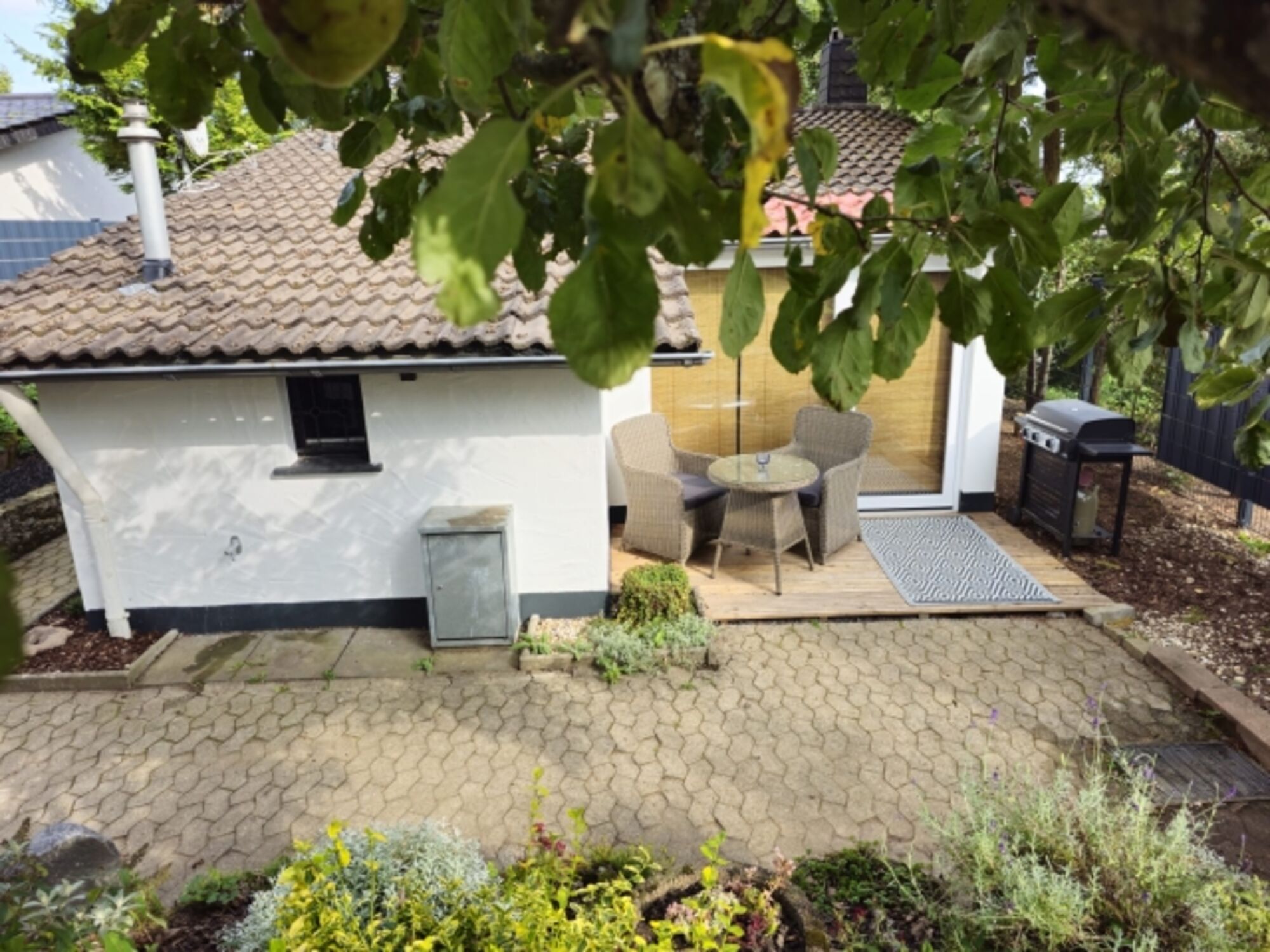 Von unserem Garten können Sie über die Getreidefelder in die Ferne blicken. Vielleicht haben Sie Glück und sehen sogar einen Fuchs! Genießen Sie den malerischen Panoramablick, lassen Sie die Seele baumeln und lauschen Sie den Naturgeräuschen. Unser Außenbereich besteht aus einem liebevoll angelegten Steinpflanzenbeet, einer kleinen Wiesenfläche, einem alten Baumbestand mit Apfelbaum, einer Essgelegenheit und einem Elektrogrill für das besondere Urlaubserlebnis. Sie dürfen sich gerne an unserem Apfelbaum bedienen und vielleicht haben Sie Lust und backen zu Hause dann noch einen Apfelkuchen mit Äpfeln aus der Vulkaneifel.