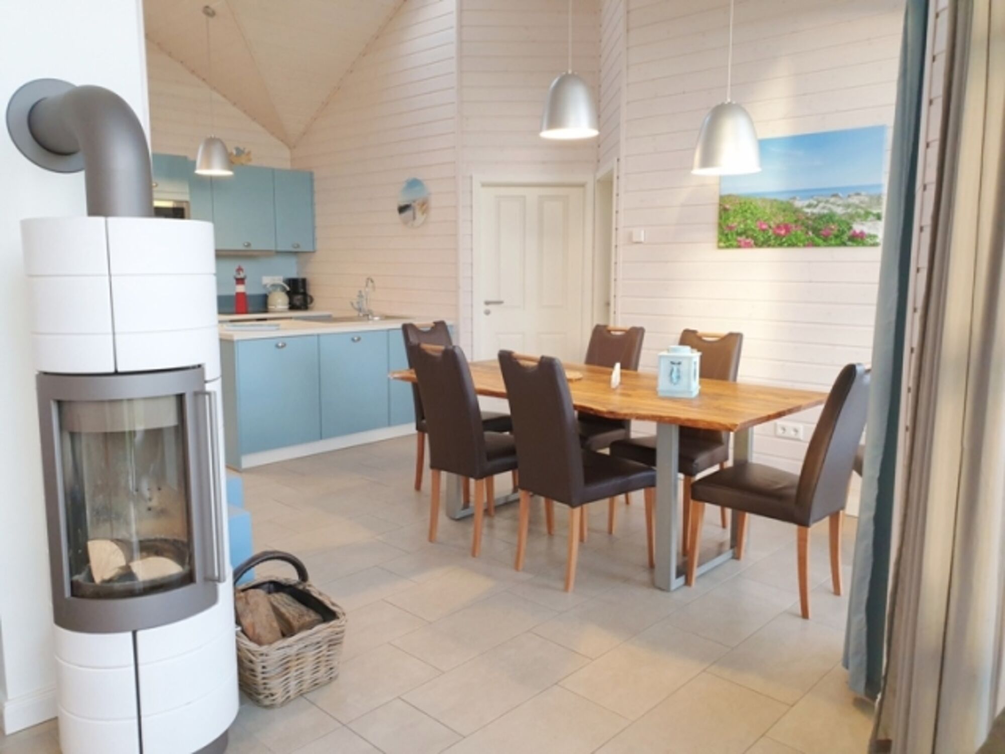 Zusatzausstattung: Waschtrockner, WLAN, Kaminofen, Sauna, SAT-TV, Flachbildschirm-Fernseher, Mini-Stereoanlage (Radio/CD-Player), iPod-Dockingstation, Bücher, Spiele, Kinderreisebett mit separater Matratze, Hochstuhl, Fußbodenheizung, Saison-Strandkorb auf dem Deich (Mai-Sept.)