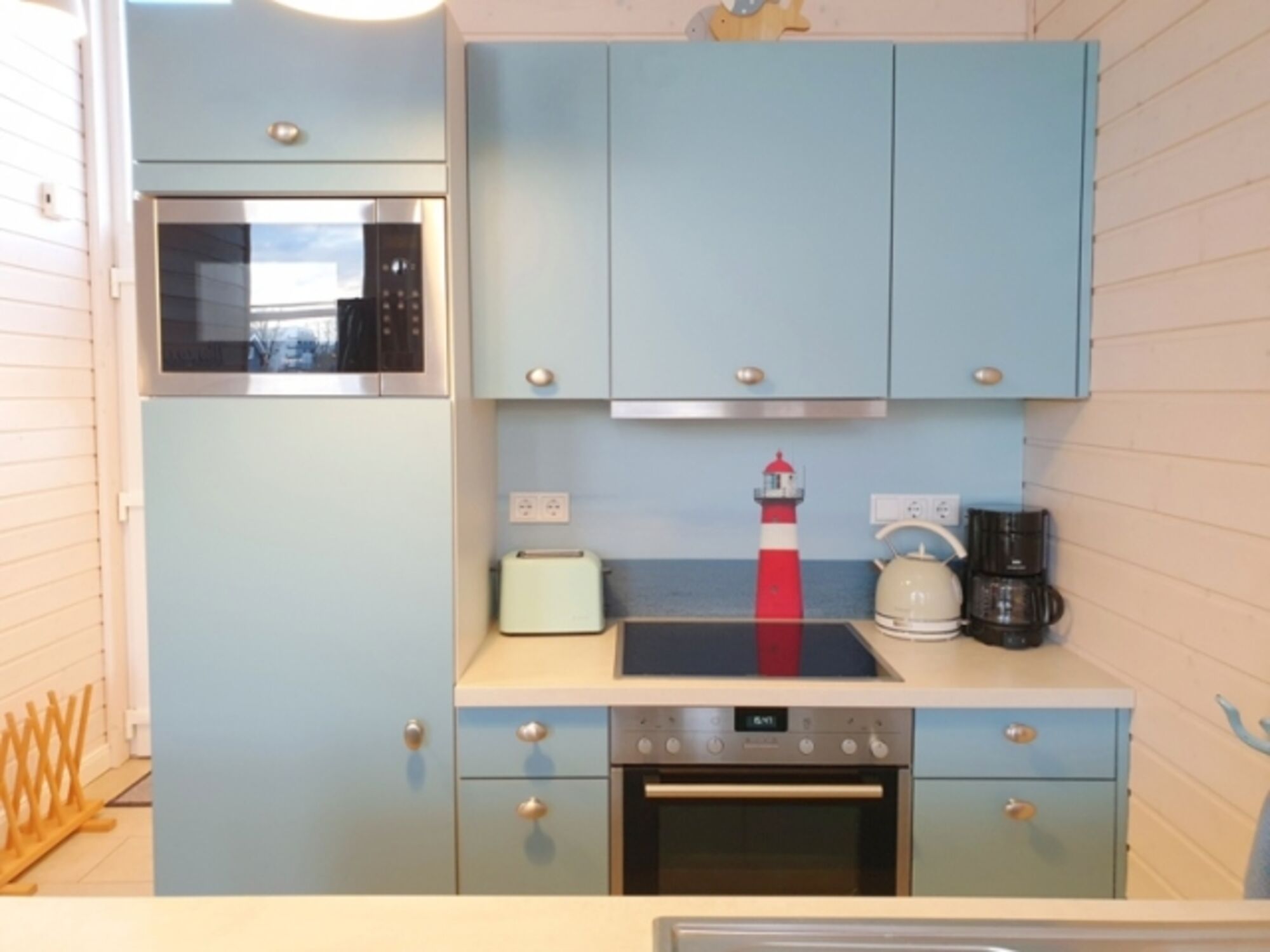 Küche: Mikrowelle, Cerankochfeld, Kaffeemaschine, Geschirrspüler, Kühlschrank, Gefrierfach, Backofen, Wasserkocher, Dunstabzugshaube