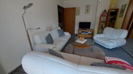 TV-Sat, TV-Flachbildschirm, HDTV Flachbildschirm, DVD-Player, CD´s, Bücher, Eckcouch, Sessel