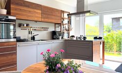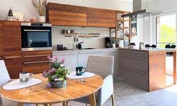Die hochwertige, offene Küche mit Tresen und großzügigem Essbereich laden zum gemeinsamen Kochen und Genießen ein.