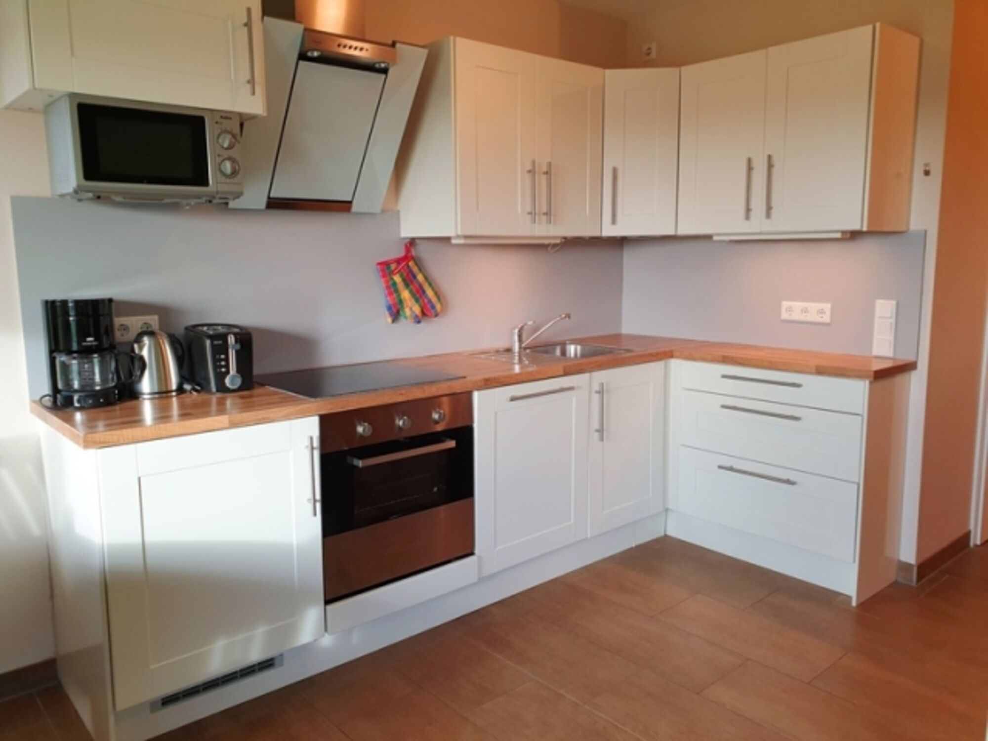 Küche: Mikrowelle, Cerankochfeld, Kaffeemaschine, Spülmaschine, Kühlschrank, Gefrierschrank, Backofen, Wasserkocher, Toaster, Dunstabzugshaube