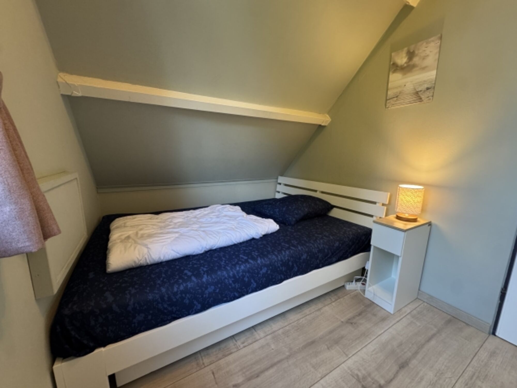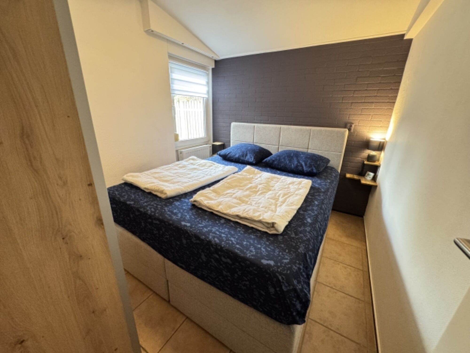 Es gibt insgesamt 3 Schlafzimmer. Das erste befindet sich im Erdgeschoss und verfügt über ein großes Doppelbett (180 x 200 cm). Die anderen beiden Schlafzimmer sind im Obergeschoss. Das größere Schlafzimmer verfügt ebenfalls über ein Doppelbett mit den Maßen 180 x 200 cm. Das kleinere Schlafzimmer beinhaltet standardmäßig ein Einzelbett mit einer Liegefläche von 80 x 200 cm.