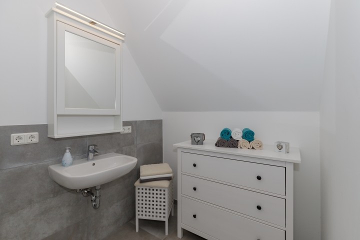 Insgesamt 5 Schlafzimmer stehen Ihnen zur Verfügung. Im Erdgeschoss befindet sich 1 Schlafzimmer mit Doppelbett, im 1. OG ein Familieschlafzimmer mit einem Doppelbett und zwei Kojenbetten (160x200), sowie 1 Schlafzimmer mit Doppelbett, im Spitzboden 2 Schlafzimmer mit je zwei Einzelbetten.