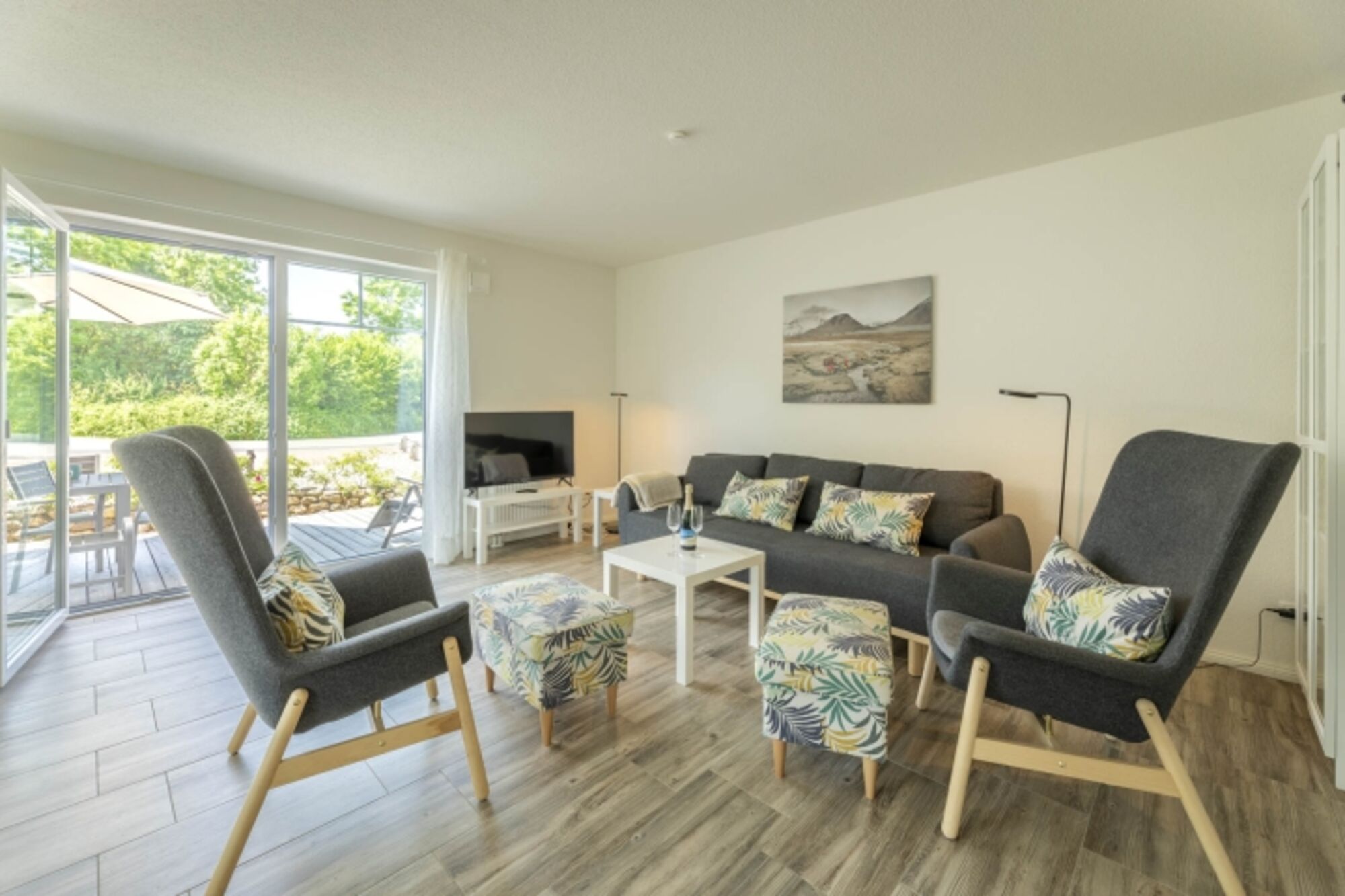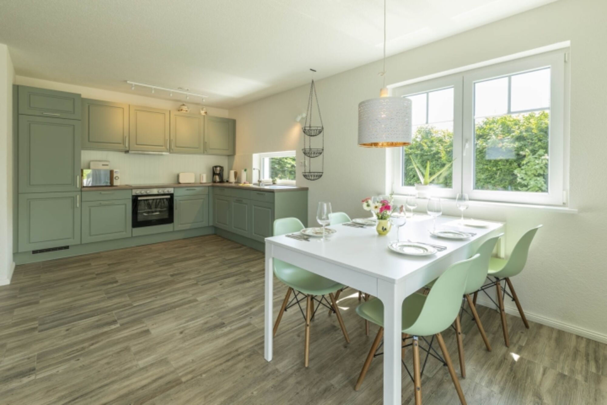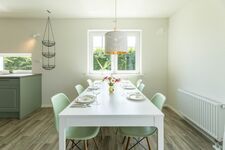 Im ruhigen und sehr geschmackvoll gestalteten Neubaugebiet im Schwedenstil liegt das neugebaute Ferienhaus Belvedere 2c in Sehlendorf in einer tollen Lage. Dies ist nur knapp über einen Kilometer von einem der feinsten Sandstrände der Region entfernt. In dem erst 2020 erbauten Haus mit eleganter und hochwertiger Ausstattung finden bis zu 6 Personen (4 Erwachsene + 2 Kinder) auf 95 m² ausreichend Platz. Modern erstrahlt der besonders helle Wohnbereich mit Sofaecke (mit Schlafoption 140x200) und TV. An diesem grenzt ein Esstisch der für bis zu 8 Personen Platz bietet. Die offene Küche ist großzügig mit Ceran-Herd, Backofen, Spülmaschine, Mikrowelle und vielem mehr eingerichtet, durch die offene Gestaltung bietet sie sehr viel Bewegungsfreiraum.