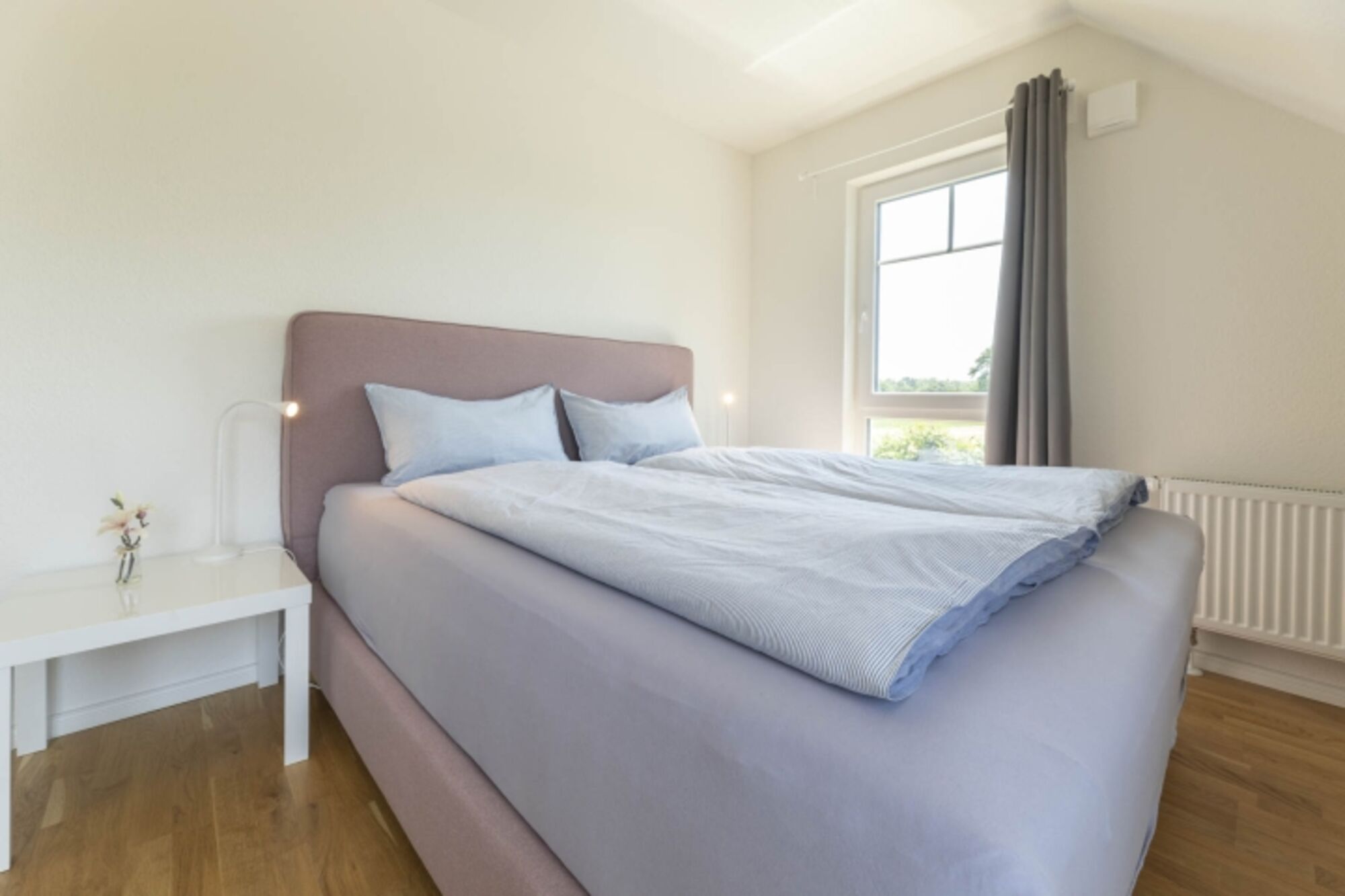 Eines der Schlafzimmer verfügt über ein Doppelbett (180x200), zudem bietet eine Ausziehcouch (140x200) weiteren Platz für eine erwachsene Person oder 2 Kinder. Das zweite Schlafzimmer verfügt über 2 Einzelbetten (140x200), das Schlafzimmer wird durch Kleiderschränke und einem Schreibtisch komplementiert. Es besteht die Möglichkeit die Fenster mit dichten Vorhängen komplett zu verdunkeln. Die Schlafoptionen gestalten sich insgesamt sehr flexibel. So kann ein zur Verfügung stehender Topper (140x200) flexibel das Schlafsofa im Elternschlafzimmer oder das Schlafsofa im Wohnzimmer zum echten Komfortbett aufwertet.