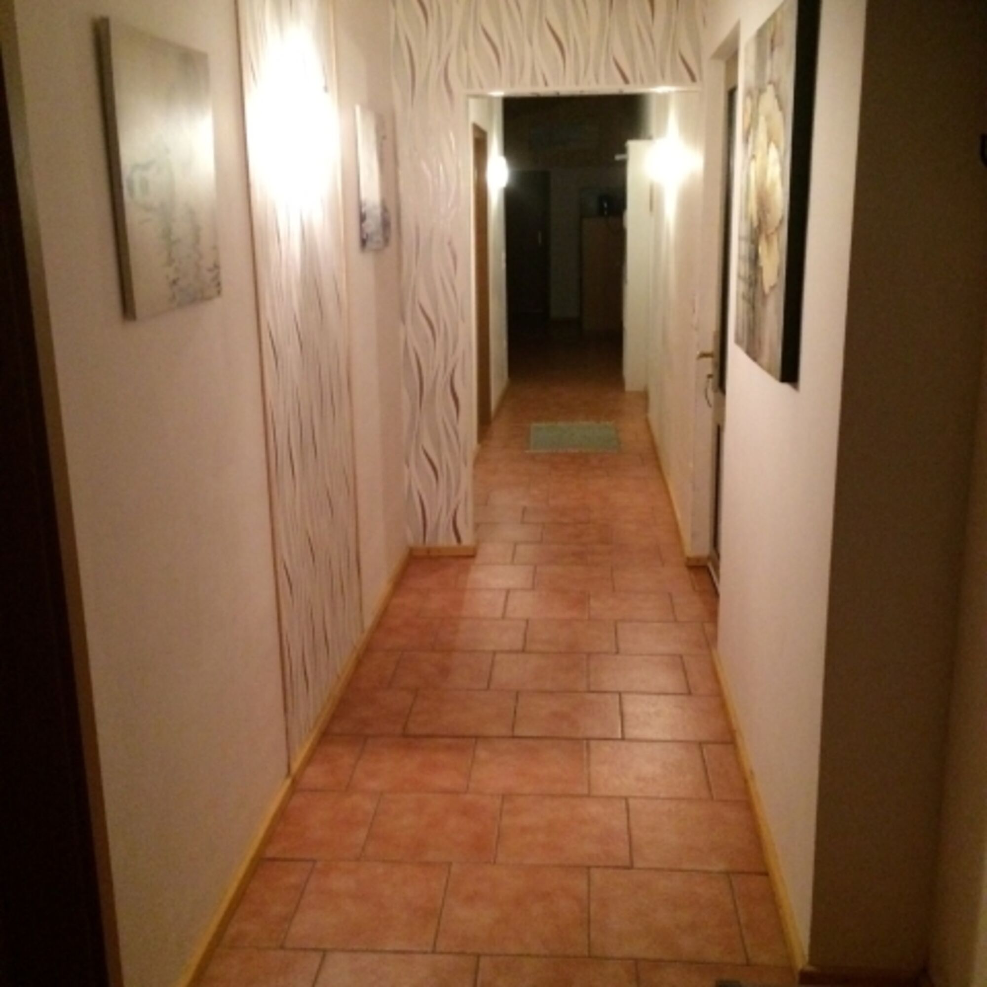 Cerankochfeld, Dunstabzugshaube, Kühlschrank mit Gefrierfach, Mixer, Korkenzieher / Flaschenöffner, Gewürze (Salz, Pfeffer, Zucker), Geschirrhandtücher, Mülltüten, Essplatz in der Küche