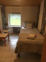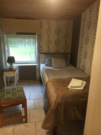 Einzelbett, Spiegel, Leselampe am Bett, Fliegengitter