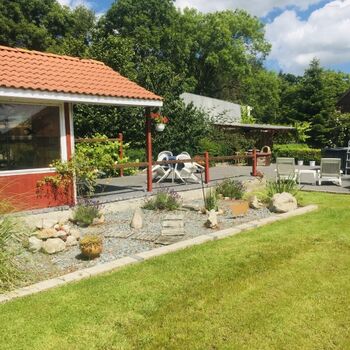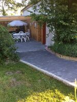Liegewiese, Strandkorb, Gartenmöbel, Kohlegrill, Bänke, Hof, Windschutz