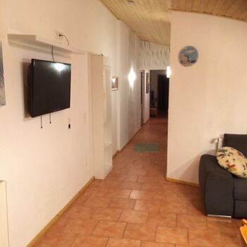 Wir vermieten hier eine schöne Ferienwohnung auf unserem Ferienhof. Bis zu 8 Personen können hier einen entspannten Urlaub mit ihren Vierbeinern verbringen. Unsere Gäste schätzen die Lage abseits vom üblichen Trubel. Trotzdem sind Strand, Meer und alle touristischen Ziele schnell zu erreichen. 2 überdachte Terrassen, Grill und ein Gartenhaus stehen Ihnen zur Verfügung. Auf unserem Hof leben auch Hühner (eingezäunt) und 2 Katzen.