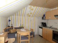 Cerankochfeld, Dunstabzugshaube, Kühlschrank mit Gefrierfach, Senseo-Kaffeeautomat, Eierkocher, Mixer, Gewürze (Salz, Pfeffer, Zucker), Öl / Essig, Geschirrhandtücher, Mülltüten, Essplatz in der Küche