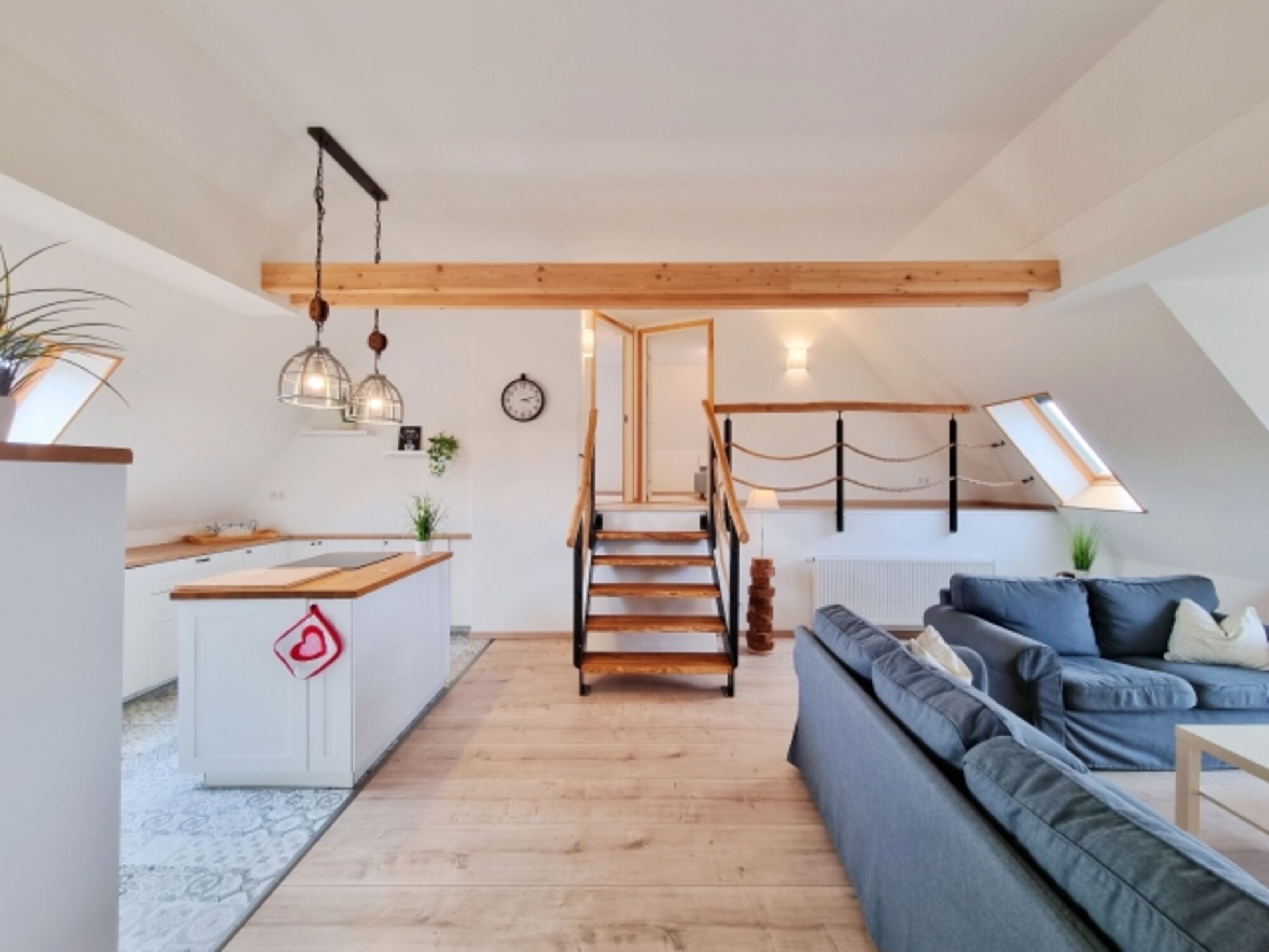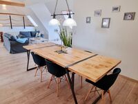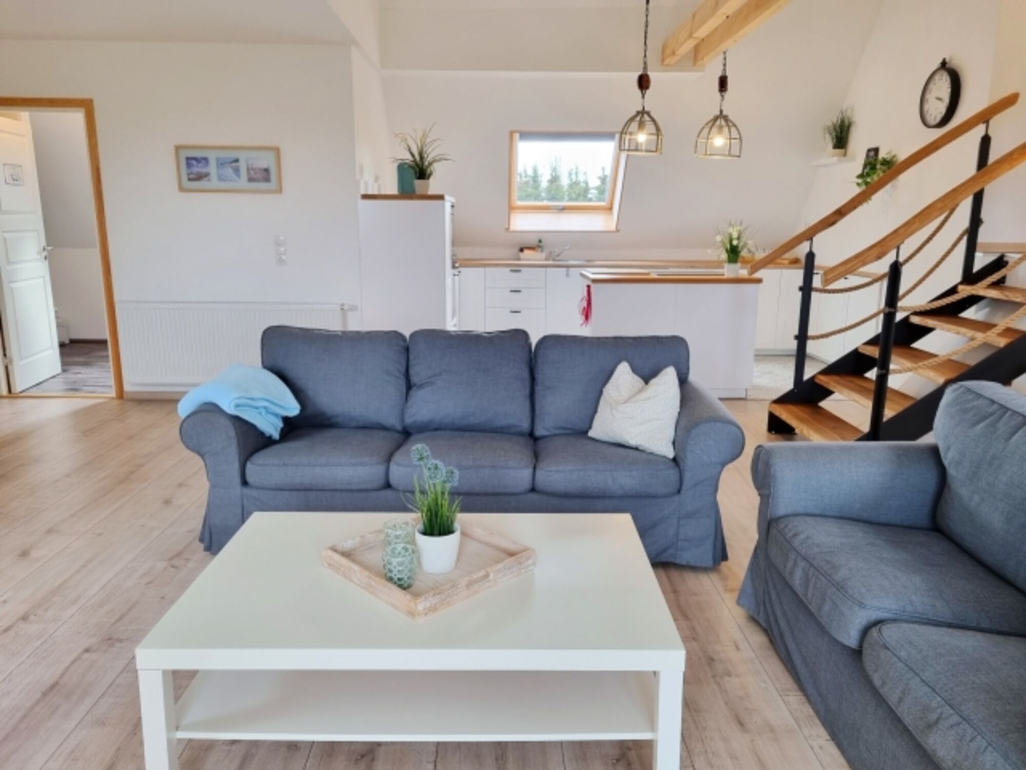 Die helle Ferienwohnung Feldkieker verfügt über einen großen, schönen Wohnbereich mit offener Landhausküche nebst Kochinsel, einem Echtholz-Esstisch mit 6 Stühlen und einer Sofaecke mit Ausgang zum Balkon, von dem ihr bei gutem Wetter sogar einen Fernblick auf die Ostsee erhaschen könnt. Daneben stehen euch 3 Schlafzimmer für insgesamt max. 6 Personen zur Verfügung, davon sind 2 Doppelbettzimmer (160x200cm und 180x200cm) mit Fernseher, und ein Zweibettzimmer. Aus dem Wohnbereich gelangt ihr zum großzügigen Duschbad mit Fön, das durch das Fenster ebenfalls über Tageslicht verfügt. Ein wohlerzogener Hund ist herzlich Willkommen.
