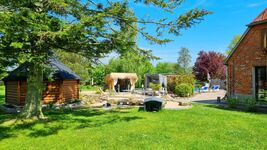 Alleinlage inmitten grüner Felder mit großen Gemeinschaftsgarten. Vom Hof aus können Sie sich direkt auf das Fahrrad schwingen und sind bereits nach nur 4km und ca, 15 Minuten auf dem Drahtesel am Strand. Oder Sie gehen zu Fuß los und erkunden die umliegenden Wälder und Feldwege.