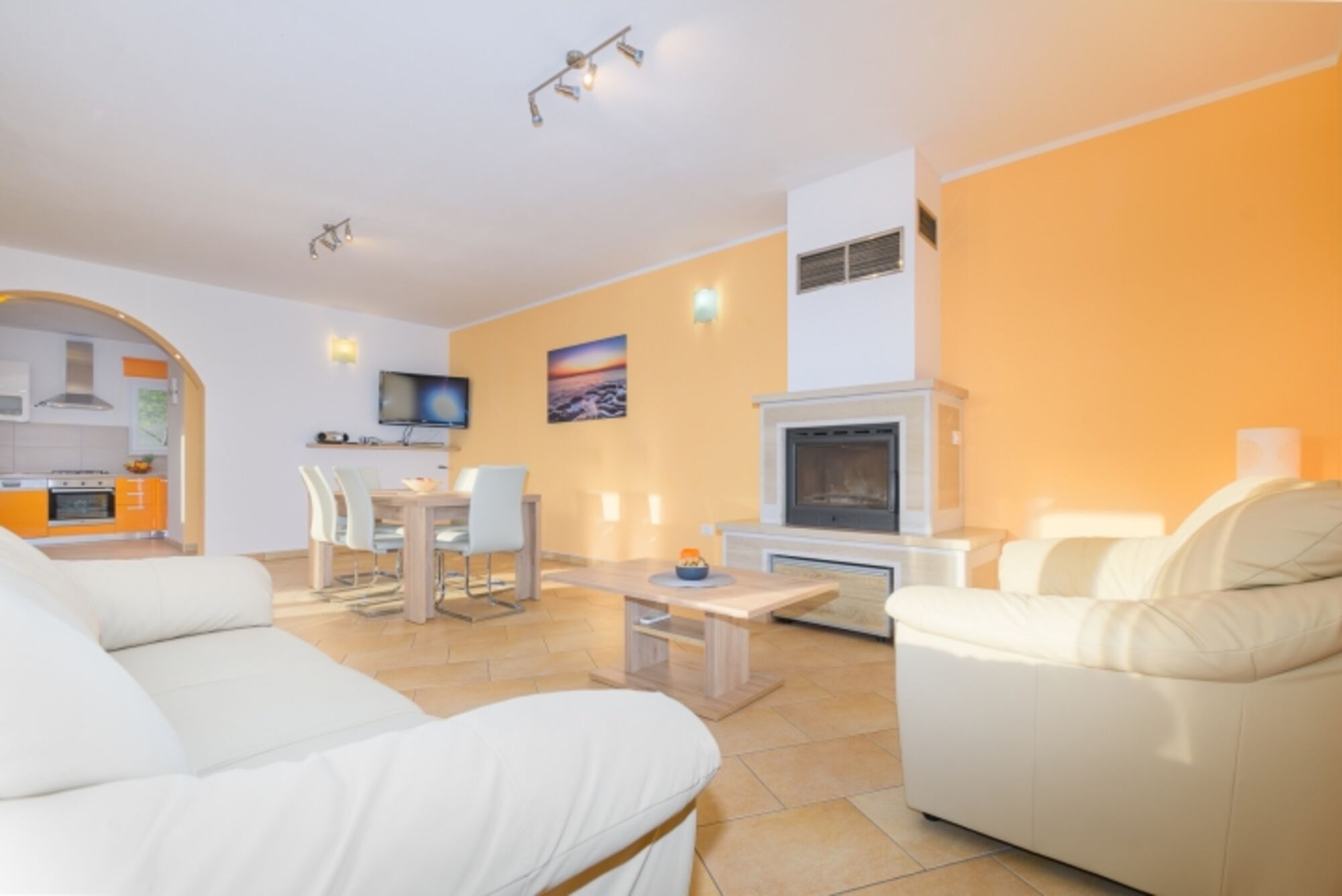 Den Gästen stehen zwei Schlafzimmer, ein Badezimmer und ein separates WC zur Verfügung. Das Wohnzimmer ist mit dem Essbereich verbunden, und die Küche ist komplett ausgestattet. Das Schlafsofa dient als zusätzliches Bett für eine Person.