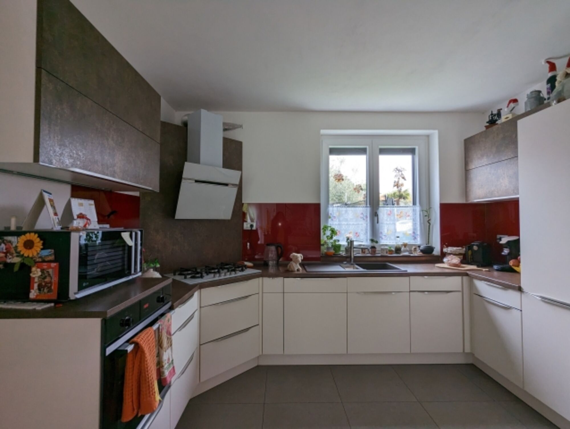 4-Platten Herd, Gasofen / Gasherd, Dunstabzugshaube, Gefrierschrank, Korkenzieher / Flaschenöffner, Essplatz in der Küche