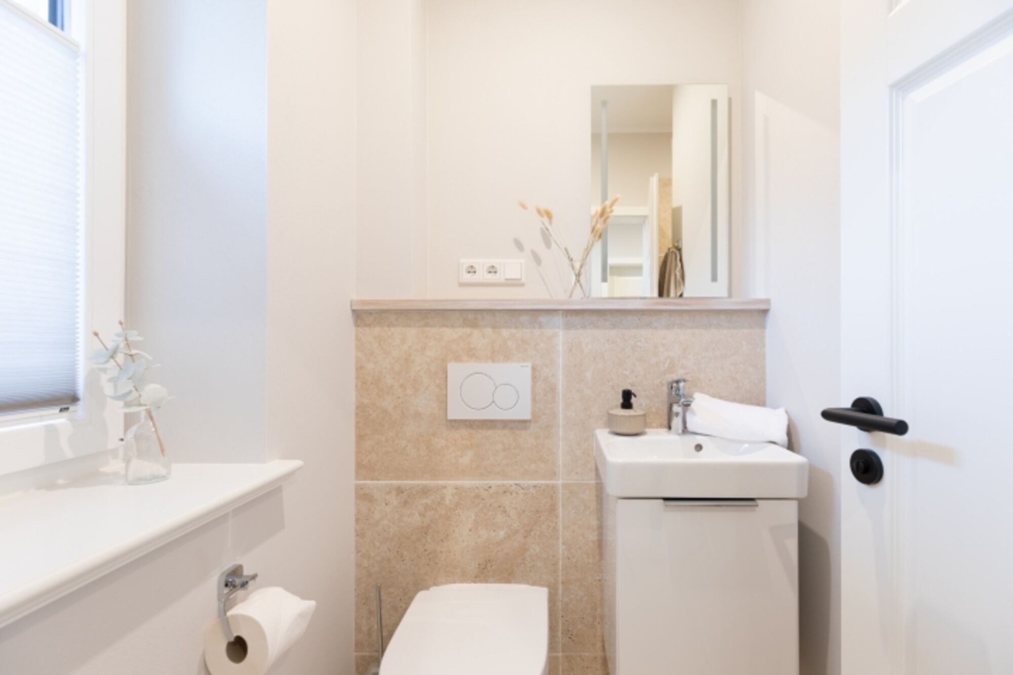 Im Erdgeschoss steht Ihnen ein Duschbad mit ebenerdigem Zugang und ein Hauswirtschaftsraum mit Waschmaschine und einem Trockner zur Verfügung.