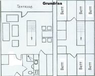 Fernseher mit Radio (Sat-Anlage) im Wohnzimmer und beiden Schlafzimmern, WLAN, Kinderbett, Hochstuhl, Terrassenmöbel, Grill, Nachtspeicherheizung und Klimaanlage stehen zu Ihrer Verfügung. Fenster und Terrassentür sind mit Fliegenschutzgitter versehen.