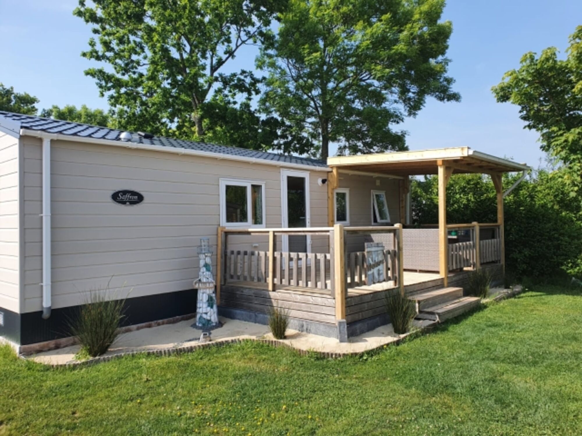 Wir vermieten unser Chalet (neueres Model aus 2021) auf dem Platz "de Oase" mitten in Renesse.