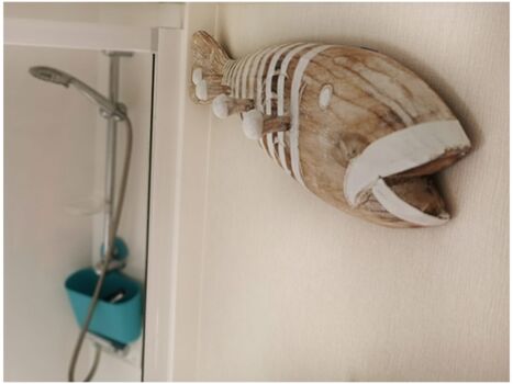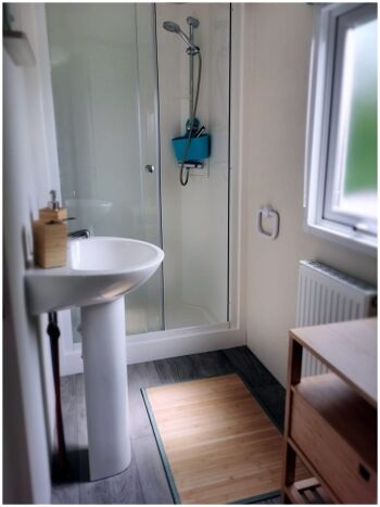 Das Bad verfügt über eine Dusche, das WC ist separat.