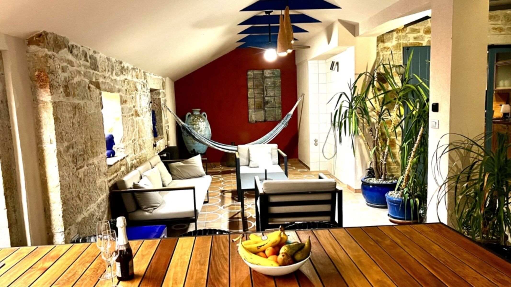 Die Rückseite des Hauses, an die sich die Villa Maxima Agri lehnt, gehört denselben Eigentümern und niemand bleibt während der Mietzeit dort, sodass der gesamte Hof den Gästen des Hauses zur Verfügung steht.