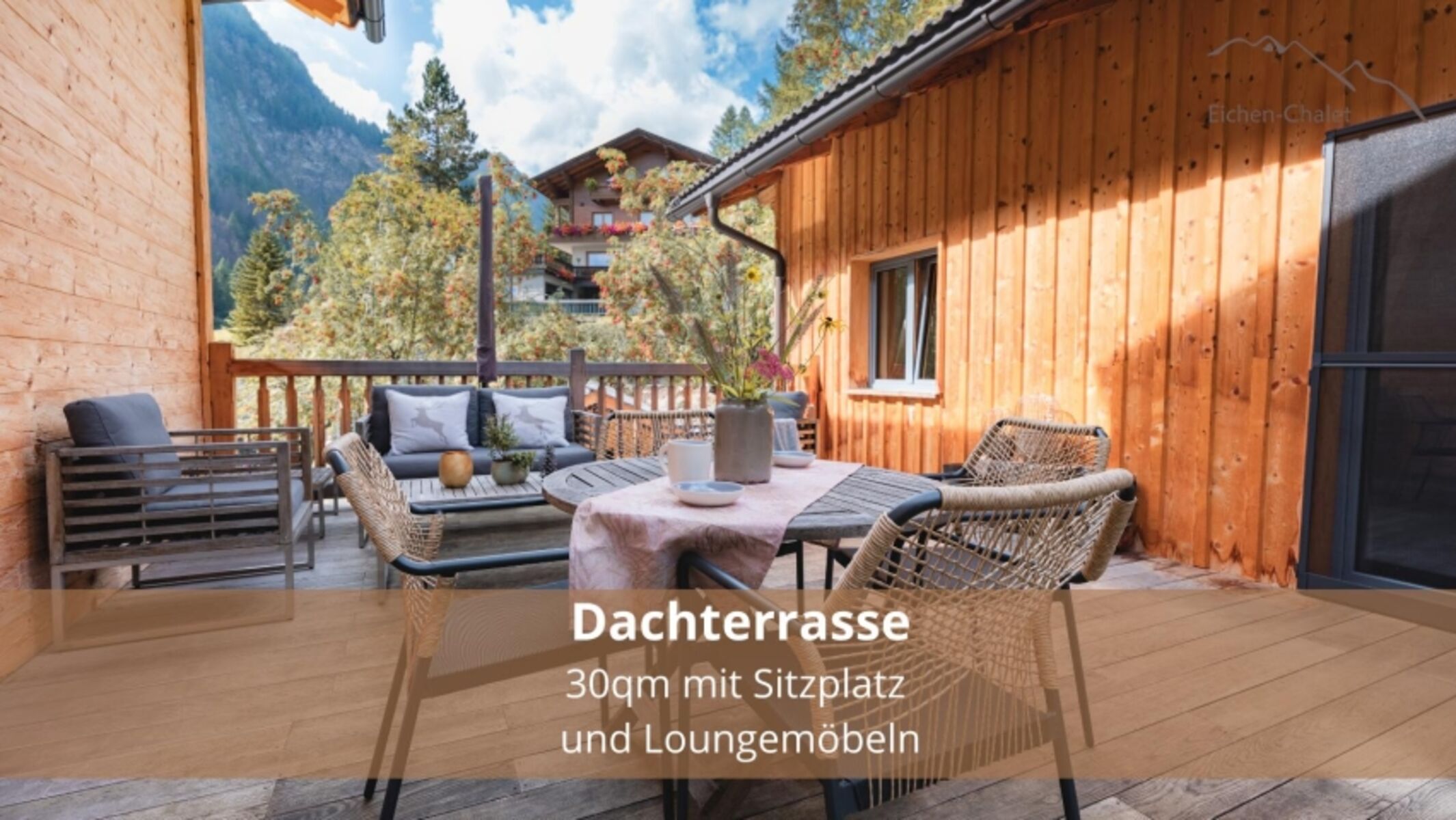 Im Inneren sorgt ein Kachelofen an kühleren Tagen für wohlige Wärme. Von der Dachterrasse genießt ihr den Blick auf die umliegende Berglandschaft. Im Garten könnt ihr den Tag am Lagerfeuer ausklingen lassen. Für Kinder gibt es einen Spielplatz mit Trampolin – viel Platz für Bewegung und gemeinsame Zeit.