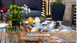 Gerne könnt ihr vor Anreise einen unserer leckeren Frühstückskörbe bestellen. Diese sind mit regionalen Bioprodukten bestückt und werden euch direkt in die Wohnung gebracht. Ihr müsst nur noch genießen.