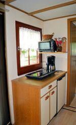 2-Platten Herd, Induktionsherd, Kühlschrank mit Gefrierfach, Eierkocher, Korkenzieher / Flaschenöffner, Geschirrhandtücher, Mülltüten