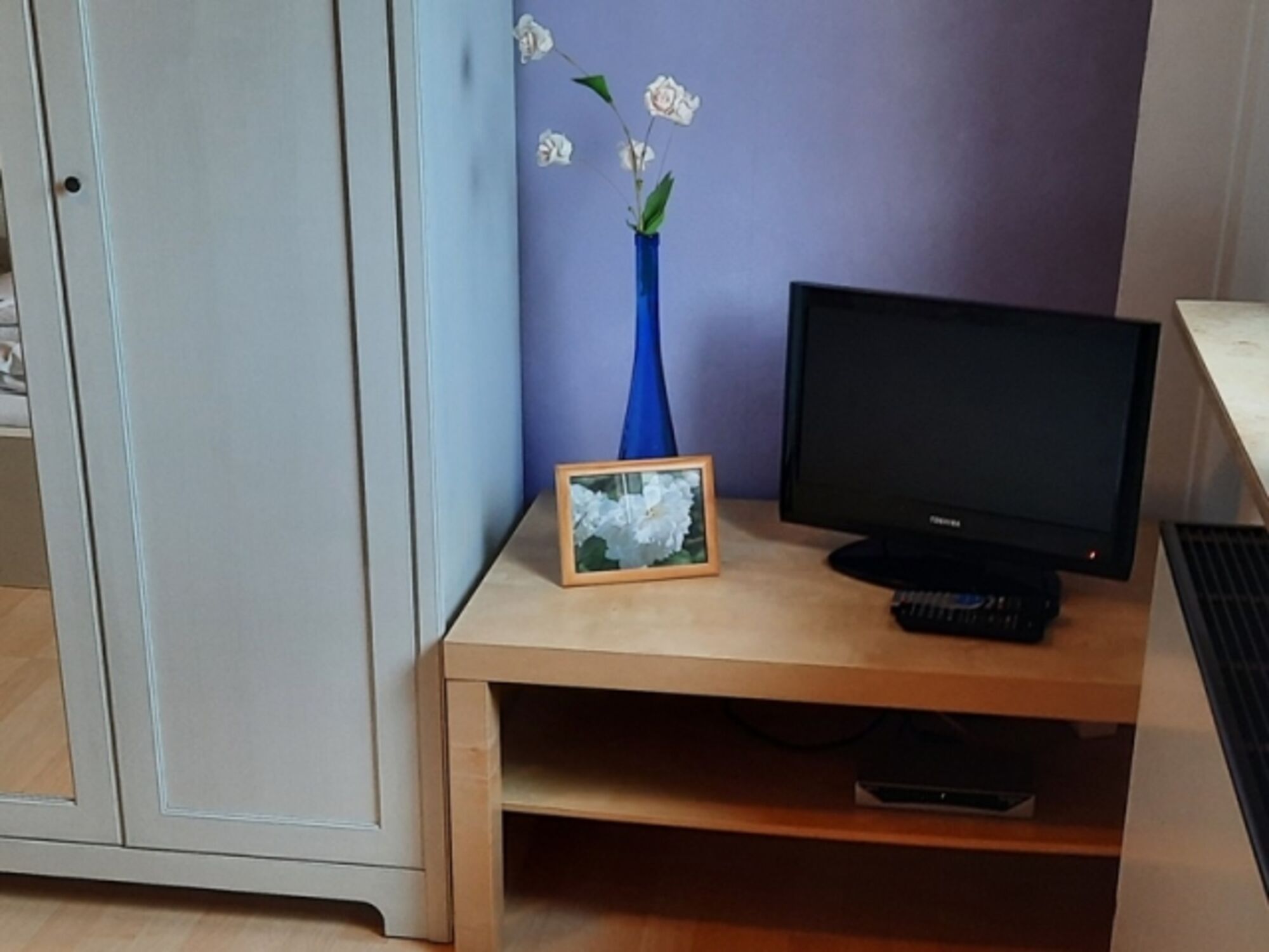 Ein Doppelzimmer verfügt über ein zusätzliches kleines TV-Gerät und DVD-Player.