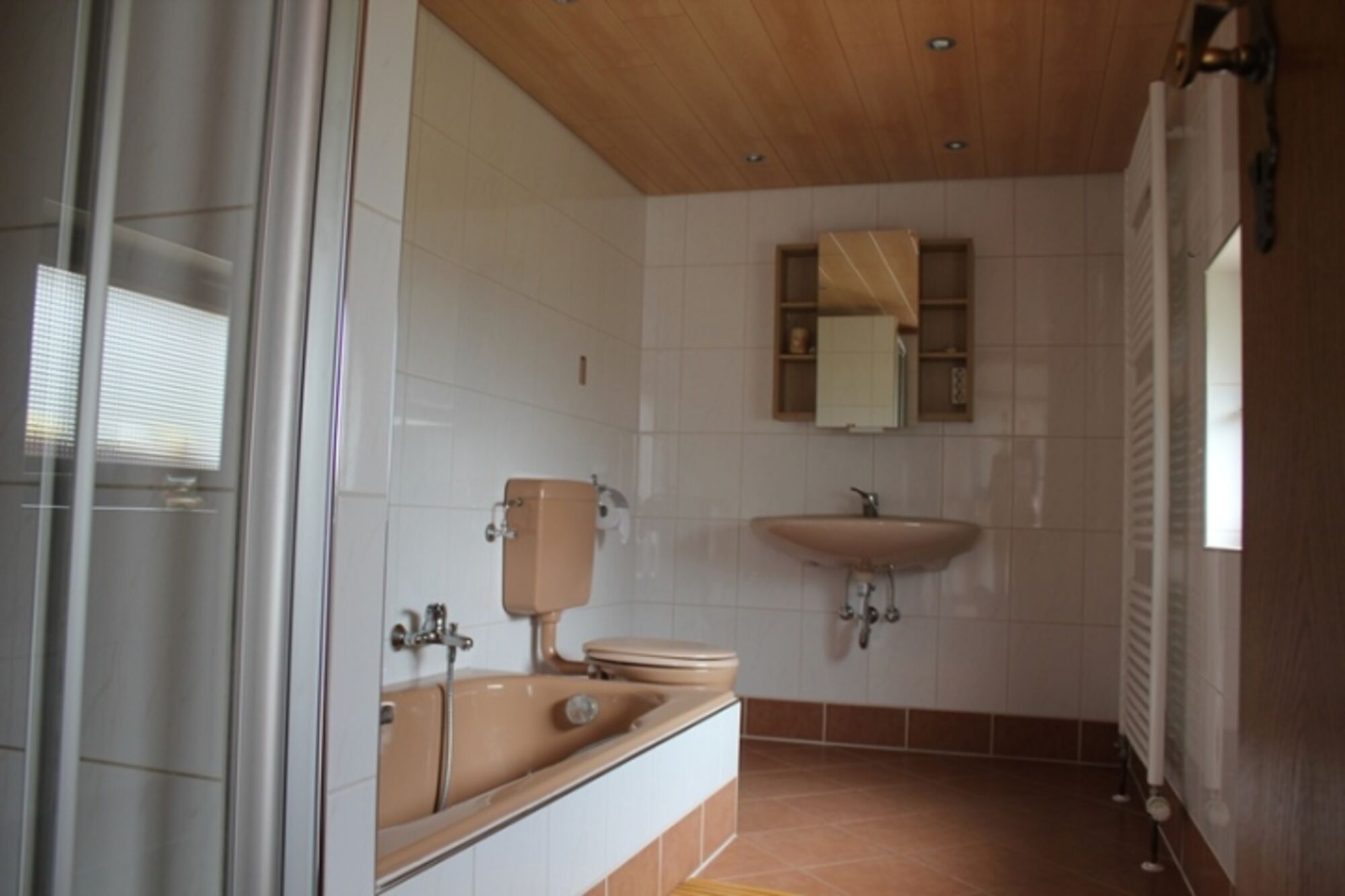 Bad mit Dusche, Badewanne, Waschbecken und WC
