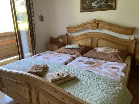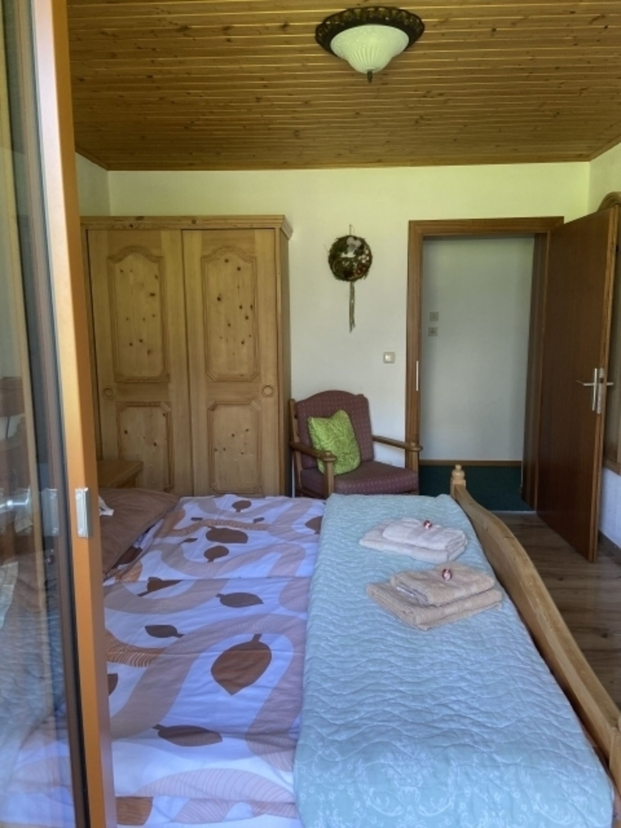 Aussicht in die Berge, ruhige und sonnige Lage. Unser Haus verfügt über 4 Zimmer (3 Doppel- und ein Familienzimmer), einem Frühstücksraum (am Abend als Aufenthaltsraum nutzbar). Reichhaltiges regionales Frühstücksbuffet . Kostenfreies Obst. Getränke gegen Bezahlung verfügbar