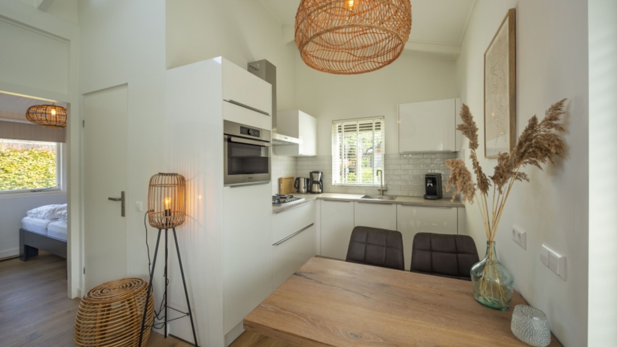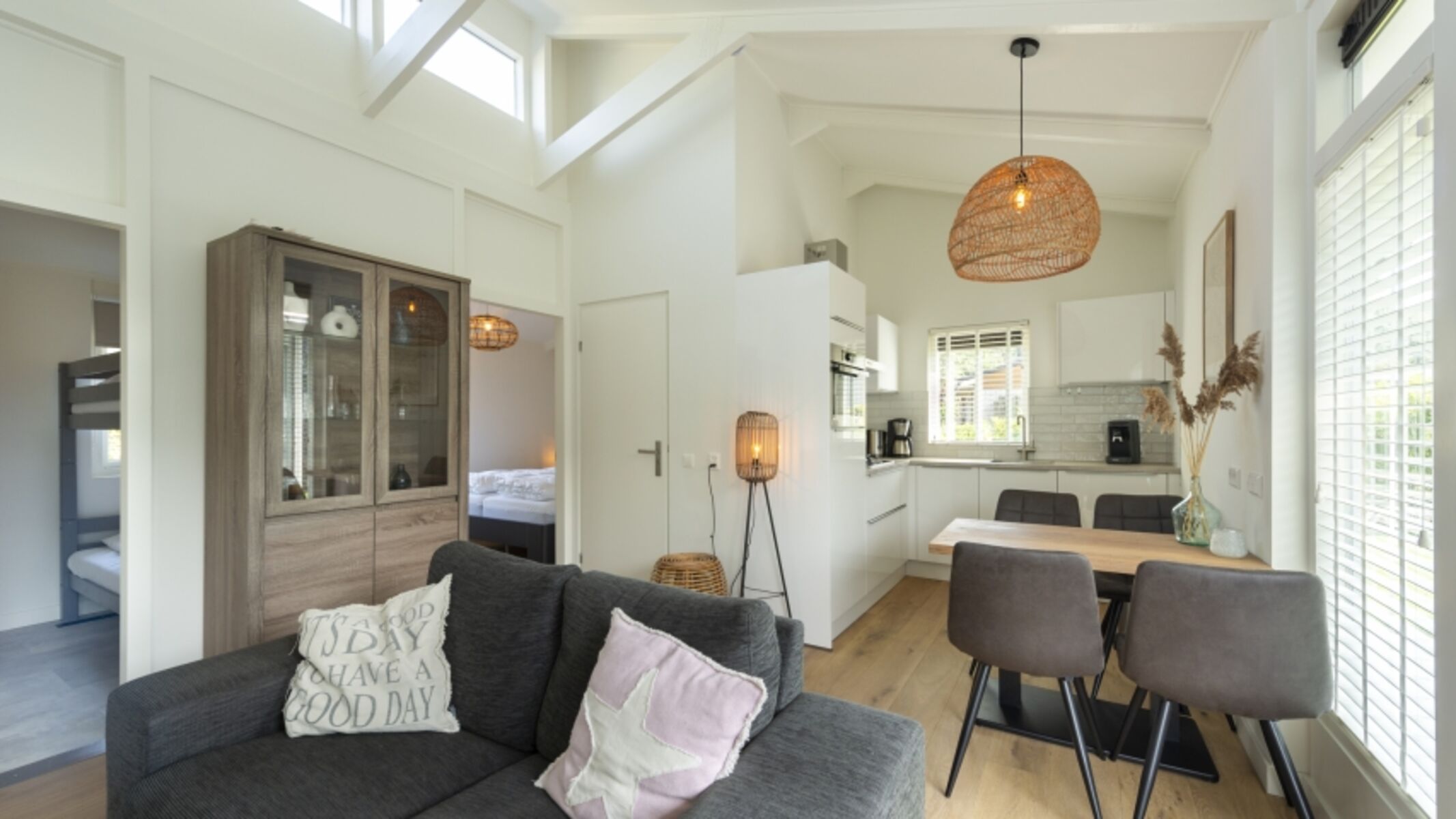 Das Haus ist im Jahr 2023 komplett renoviert und verfügt nun von einem neuen Badezimmer und einer neuen Küche. Das Wohnzimmer ist gemütlich und stilvoll eingerichtet, mit einer komfortablen Couch und Rotan Stühlen. Ist das Wetter mal nicht so gut, dann können Sie es sich vor dem Kamin gemütlich machen. Das Haus verfügt über 2 Schlafzimmer eins davon mit Doppelbett und das andere mit einem Etagenbett ausgestattet. Vor dem Etagenbett befindet sich ein Gitter, sodass die Kinder sicher drin schlafen können. Des Weiteren haben Sie eine Waschmaschine und einen Safe im Haus. Das Badezimmer verfügt über eine Dusche und eine Toilette.