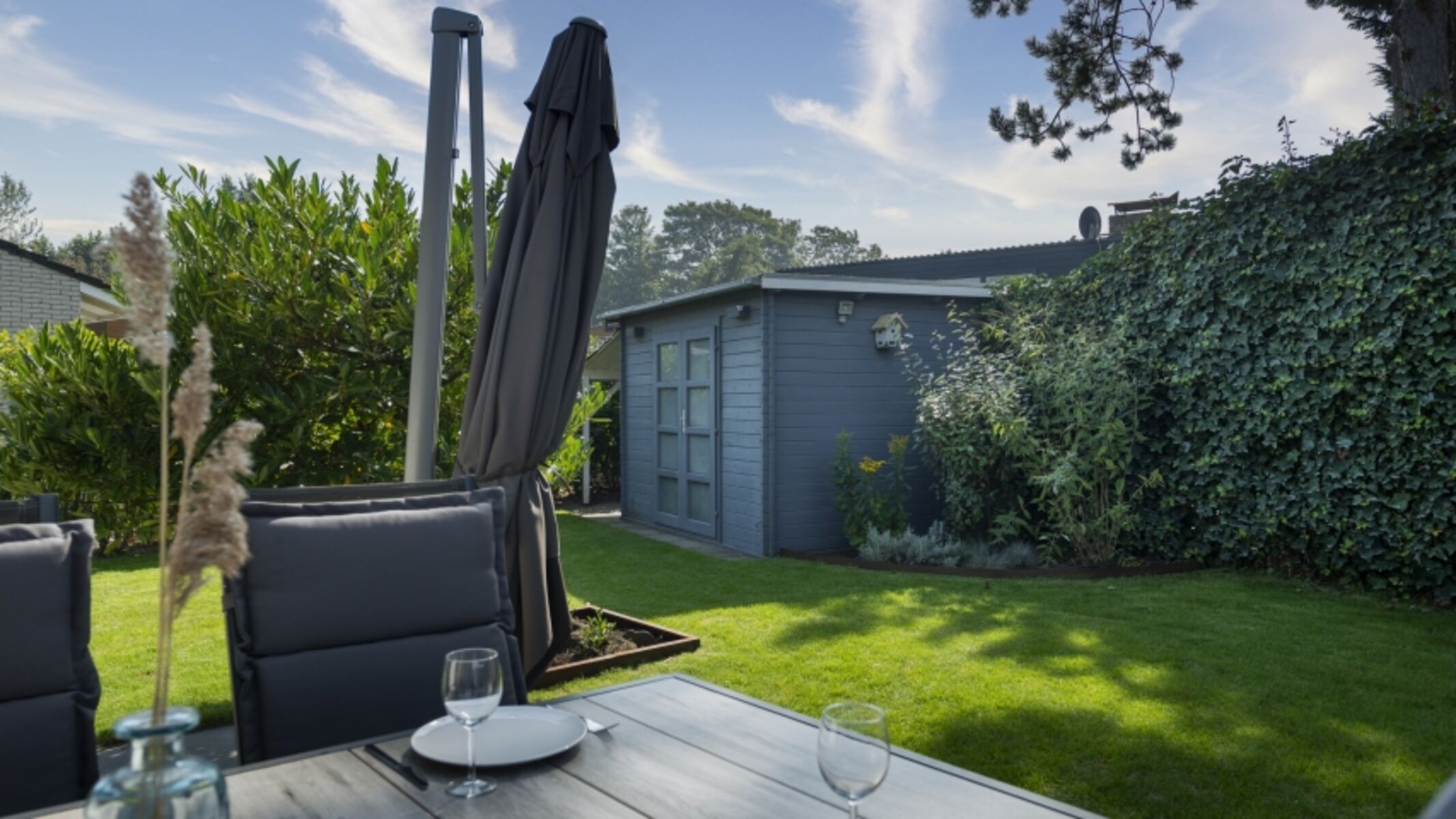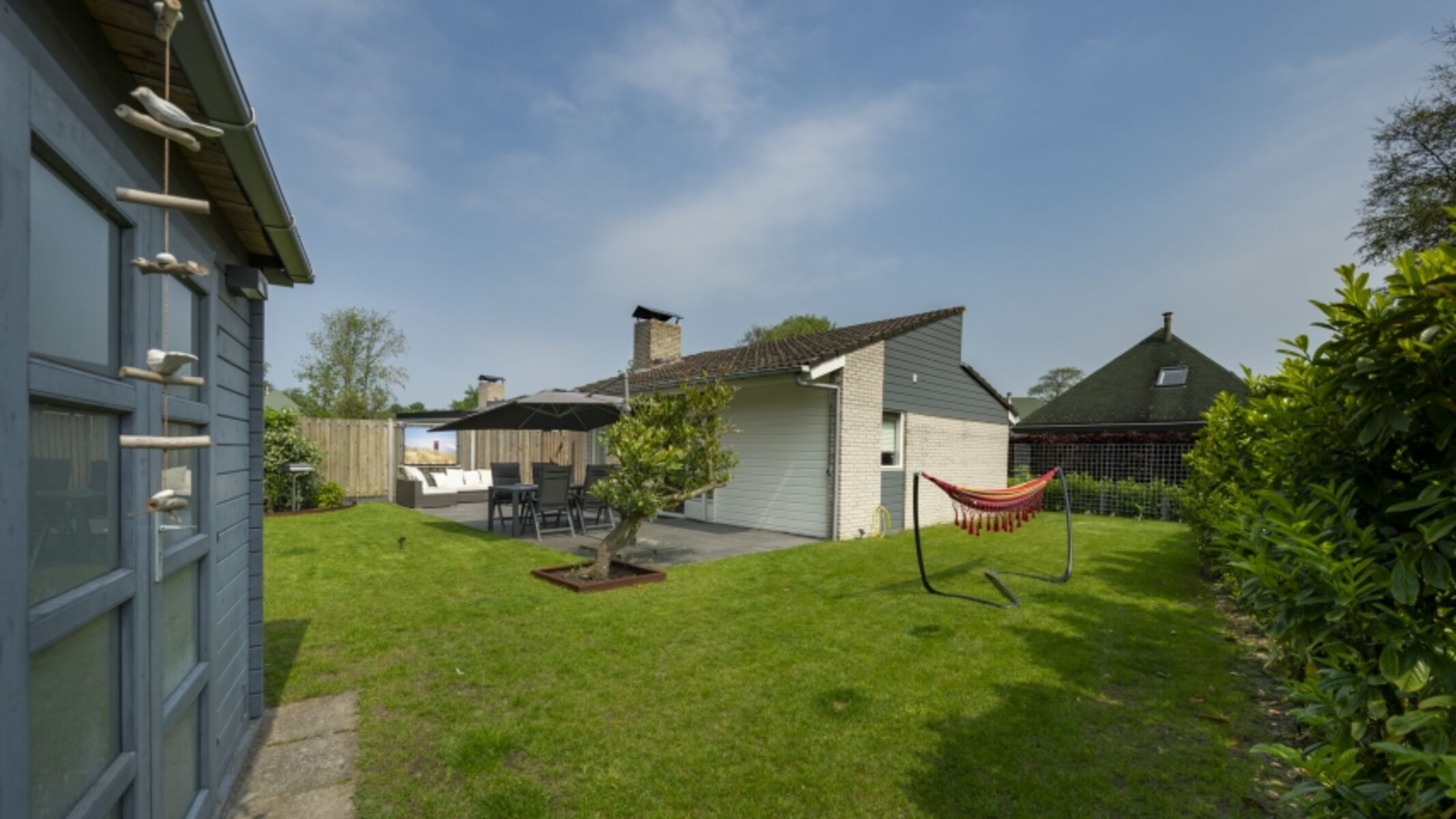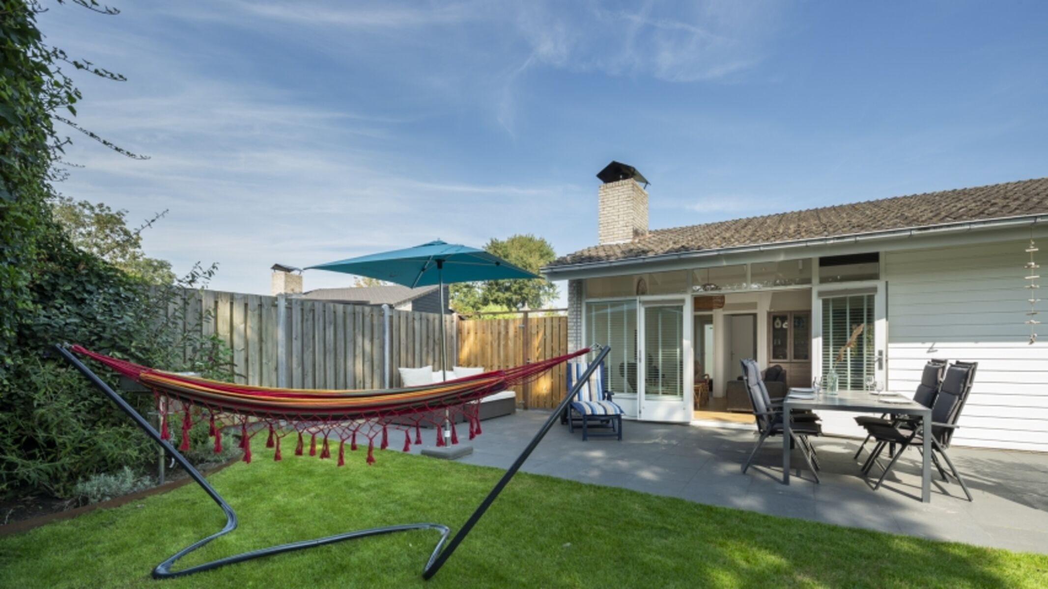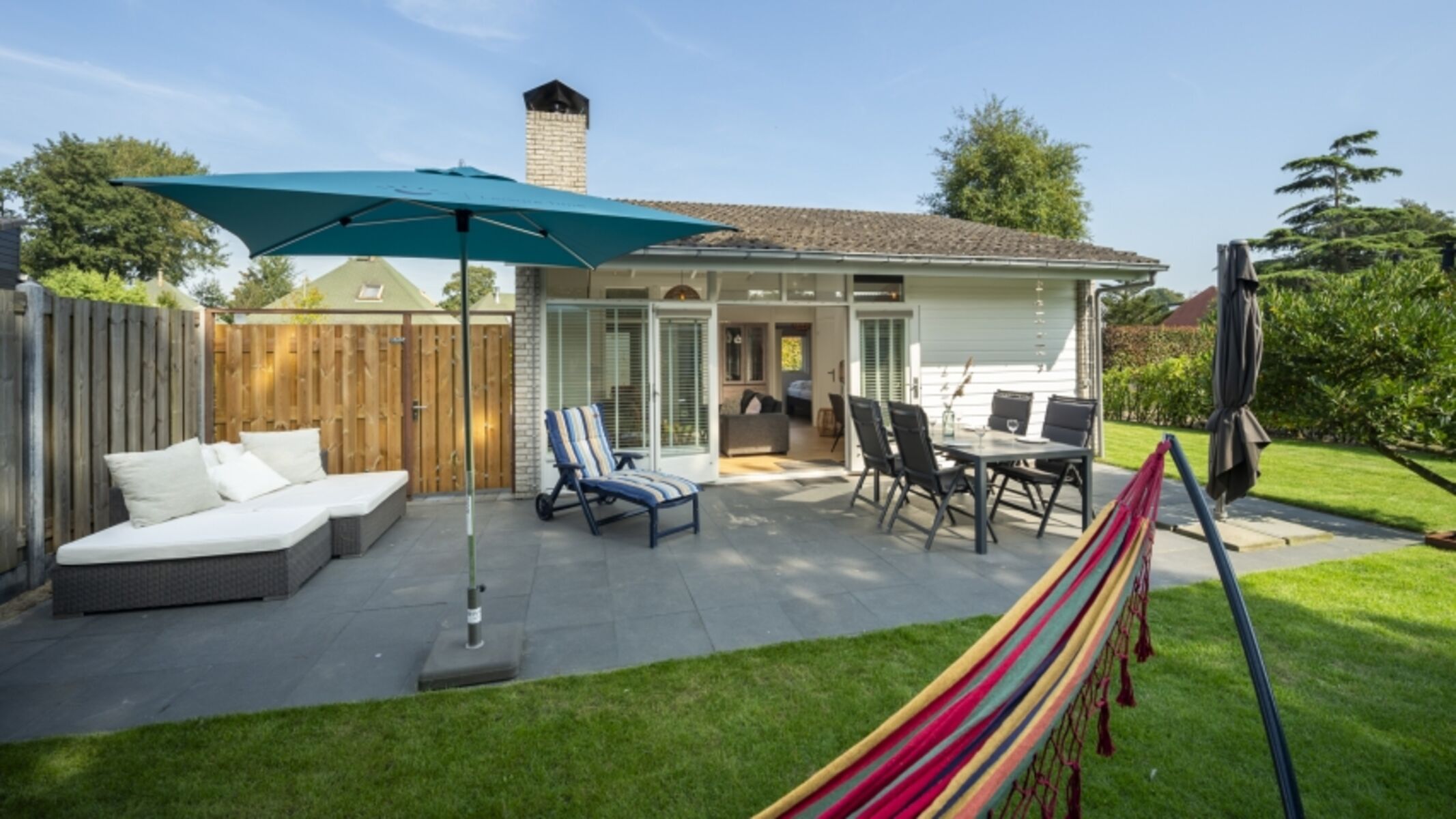 Im geschlossenen Garten können Sie herrlich genießen von einem Getränk im Loungeset. Auch können Sie es sich draußen gemütlich machen mit den Stühlen, die sich verstellen lassen.