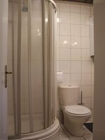 Im Bad des Ergeschosses befindet sich eine Dusche, ein Waschbecken und ein WC. Darüber hinaus befindet sich im Erdgeschoss ein zusätzliches WC.