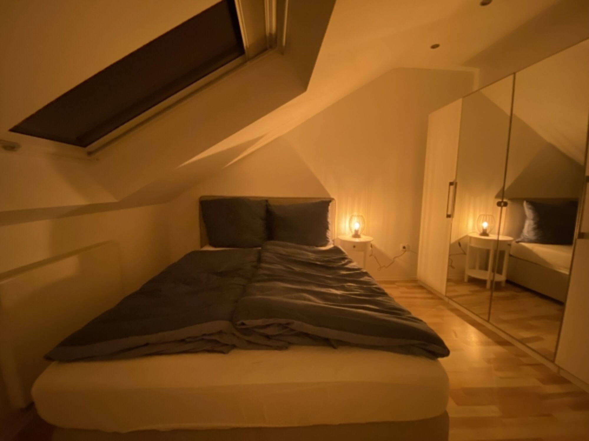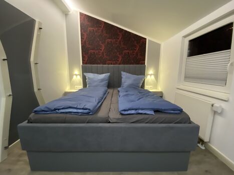 Doppelbett 1,40 x 2,00m, Boxspringbett, Spiegel, Leselampe am Bett
