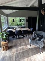 Holzferienhaus mit Blick auf das schöne Hilletal