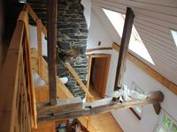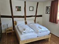 In der oberen Etage befinden sich 2 Doppelzimmer und 2 Zimmer mit je 1 Einzelbett und einem Kinderbett. Bei einem dieser Doppelzimmer handelt es sich um ein Durchgangszimmer zum Zimmer mit Einzelbett und Kinderbett.