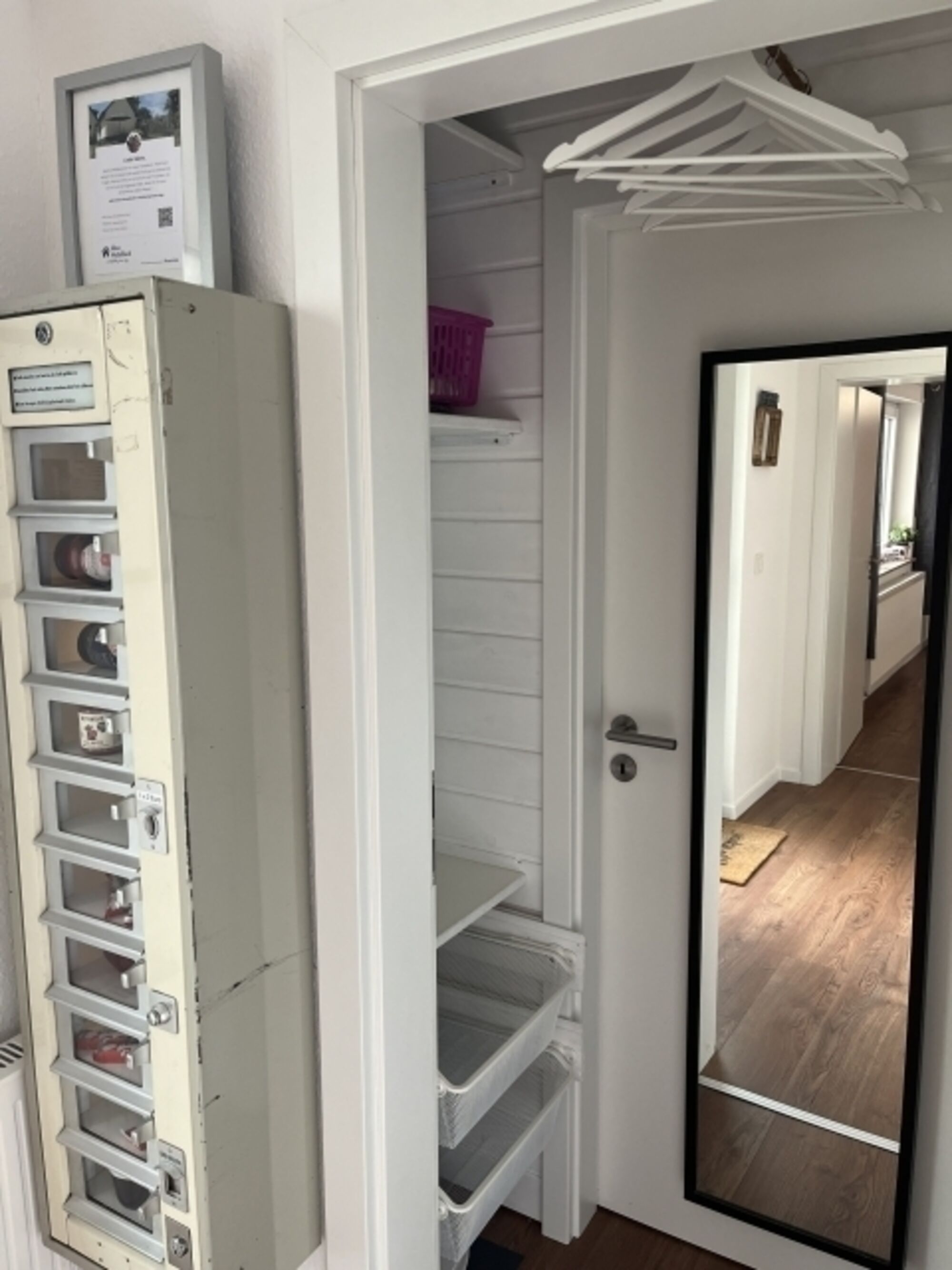 Jetzt ganz neu haben wir für euch einen kleinen begehbaren Kleiderschrank fertiggestellt, damit ihr ganz entspannt euren Koffer ausräumen könnt.