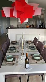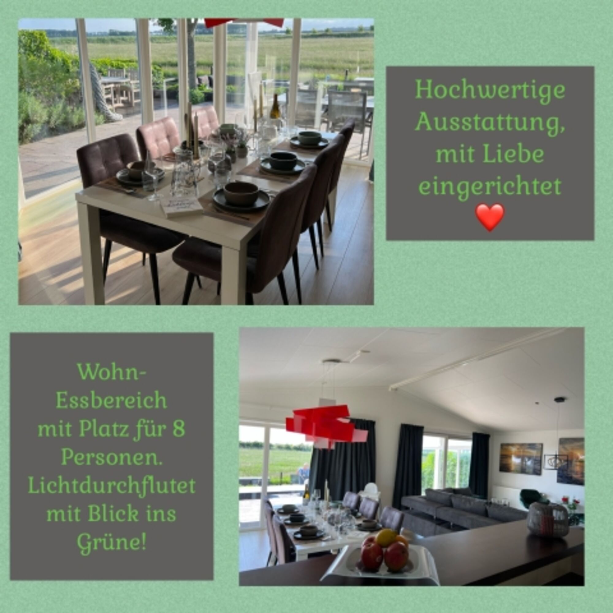 Ausgestattet mit einem Esstisch bis zu 8 Personen, einem Kinderstuhl für die Kleinsten und einer gemütlichen Sofaecke (mit elektrisch verstellbarer Sitzfläche ) was zum Fernsehen, relaxen, lesen und kuscheln einlädt, einer hervorragend ausgestatteten Küche, steht einem entspannten und glücklichen Urlaub nichts mehr im Wege.