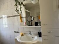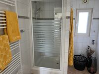 Unser Badezimmer ist ausgestattet mit einer Dusche und einem Waschbecken. Die Toilette befindet sind in einem separaten Raum.
