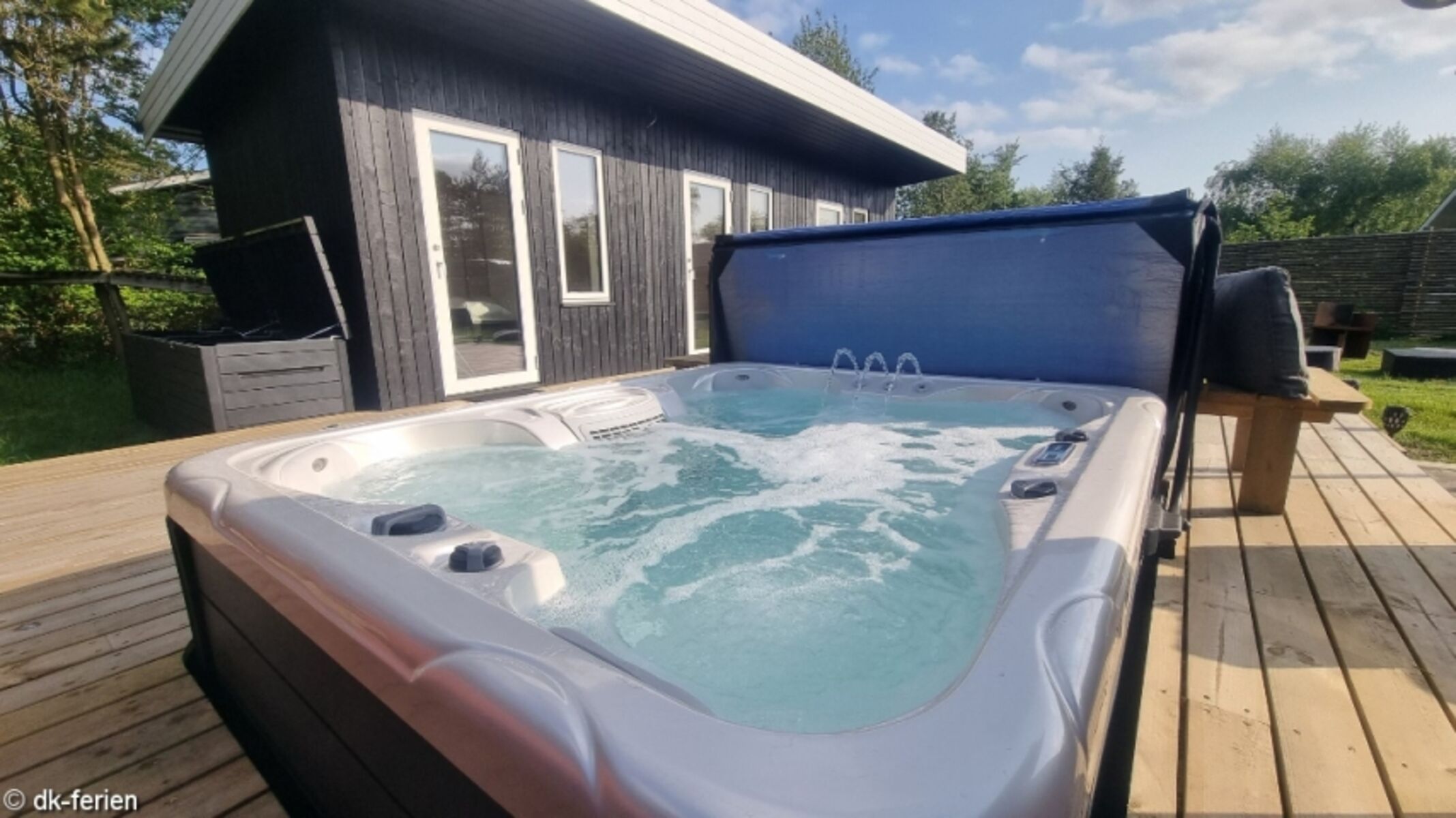 Exklusives Pool-Ferienhaus mit Jakuzzi auf der eingezäunten Terrasse